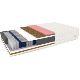 Model NARNI patří do skupiny kapesních matrací. Kapesní pružiny jsou vyrobeny technologií NanoHARD, jejíž drát tvrzený pod vodou výrazně prodlužuje jejich životnost. Díky použití 7 zón s různou tvrdostí poskytuje matrace ergonomickou polohu těla při odpočinku. Nezávislá práce pružin eliminuje vliv ohýbání velké plochy matrace při tlaku na její malou plochu. Tímto způsobem druhá osoba nepocítí žádné otáčení nebo vrtání. Vložka kapsy je obklopena polyuretanovou pěnou T25, která je odolná proti deformaci. Na obou stranách je použita kokosová vrstva, která zajišťuje zvýšenou tuhost povrchu. Na jedné straně je použita termoplastická pěna VISCO, která se vlivem teploty přizpůsobuje tvaru těla. Poskytuje páteři přirozenou polohu a oporu. Na druhé straně je použita latexová vložka, která se vyznačuje vysokou elasticitou a vynikající propustností vzduchu. Trvale se nedeformuje a zachovává si svůj původní tvar. Specifikace: tvrdost: H4 hard, tloušťka: 23 cm. Složení: kokosová vložka: 1 cm, perforovaný latex: 2 cm, polyuretanová pěna T25: 2 cm, potah: 1 cm, výška pružiny: 12 cm, termoplastická pěna VISCO: 2 cm, polyuretanová pěna T25: 2 cm, kokosová vložka: 1 cm.