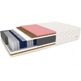 Model NARNI MAX patří do skupiny taštičkových matrací. Kapesní pružiny jsou vyrobeny technologií NanoHARD, jejíž drát tvrzený pod vodou výrazně prodlužuje jejich životnost. Díky použití 7 zón s různou tvrdostí poskytuje matrace ergonomickou polohu těla při odpočinku. Nezávislá práce pružin eliminuje vliv ohýbání velké plochy matrace při tlaku na její malou plochu. Tímto způsobem druhá osoba nepocítí žádné otáčení nebo vrtání. Vložka kapsy je obklopena polyuretanovou pěnou T25, která je odolná proti deformaci. Na obou stranách je použita kokosová vrstva, která zajišťuje zvýšenou tuhost povrchu. Na jedné straně je použita termoplastická pěna VISCO, která se vlivem teploty přizpůsobuje tvaru těla. Poskytuje páteři přirozenou polohu a oporu. Na druhé straně je použita latexová vložka, která se vyznačuje vysokou elasticitou a vynikající propustností vzduchu. Trvale se nedeformuje a zachovává si svůj původní tvar. Specifikace: tvrdost: H4 hard, tloušťka: 29 cm. Složení: kokosová vložka: 1 cm, perforovaný latex: 2 cm, polyuretanová pěna T25: 2 cm, potah: 1 cm, výška pružiny: 18 cm, termoplastická pěna VISCO: 2 cm, polyuretanová pěna T25: 2 cm, kokosová vložka: 1 cm.