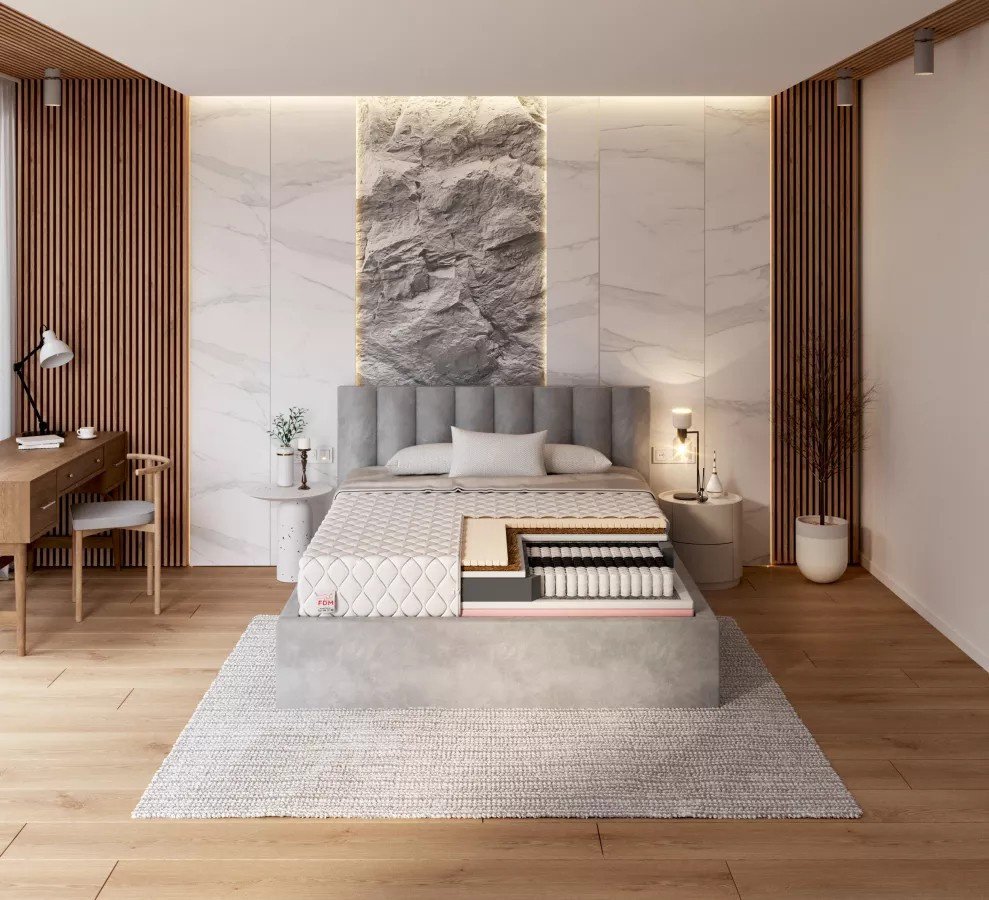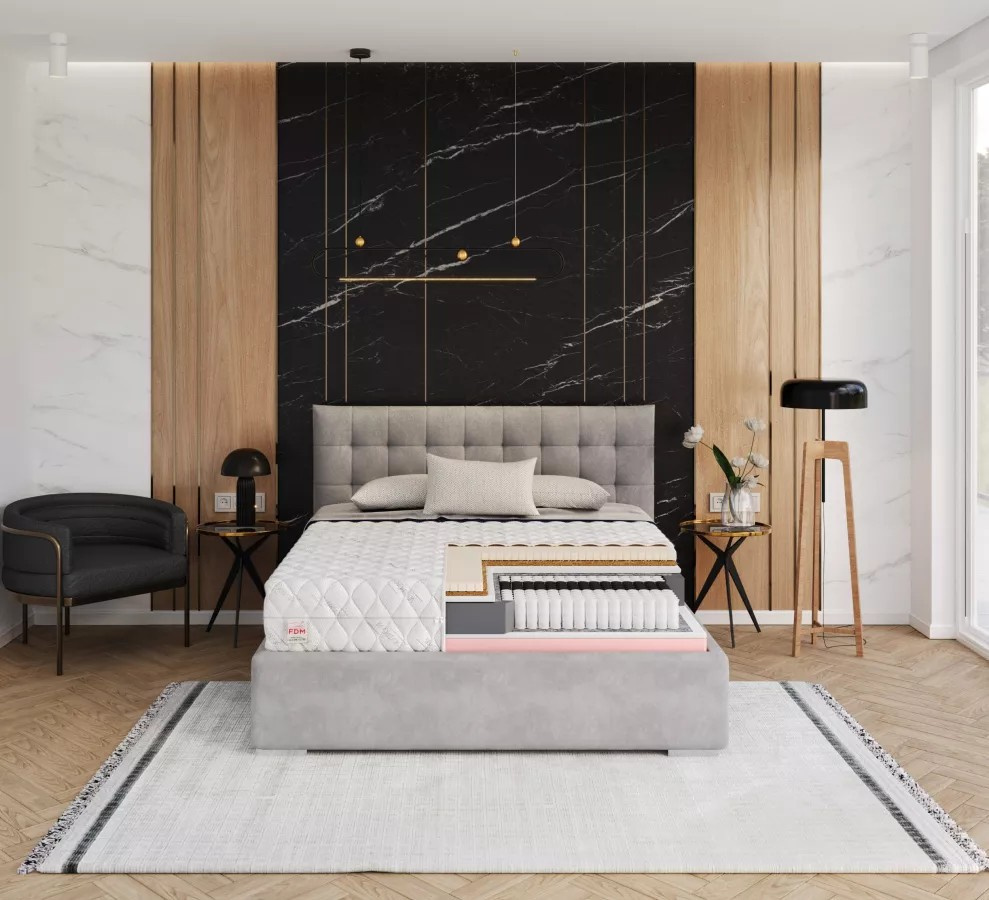 Kapsová matrace SEDONA Konstrukce modelu SEDONA je založena na kapsové technologii. Použité taštičkové pružiny vytvořené inovativní technologií NanoHARD se vyznačují použitím dvakrát kaleného drátu, což výrazně zvyšuje jejich životnost a odolnost. Tato matrace je rozdělena do 7 zón s různou tuhostí, které poskytují ergonomickou oporu tělu při odpočinku a optimální podporu různým částem těla. Pružiny působí nezávisle, čímž se eliminuje riziko deformace celého povrchu matrace v důsledku tlaku na její části. Tím je zajištěno, že veškeré pohyby, např. otáčením nebo pohybem v noci neovlivníte pohodlí druhé osoby spící na matraci. Výhody matrace SEDONA Sedmi zónová matrace Oboustranná matrace - H4 a H3 Tloušťka 22 cm Dobrá cirkulace vzduchu Má antialergické vlastnosti Ergonomické tvarování těla Je vyrobena z mnoha vrstev s jedinečnými vlastnostmi Pružinový příspěvek matrace SEDONA je z jedné strany obklopen polyuretanovou pěnou T25, která se vyznačuje odolností proti deformaci, což zaručuje trvalou pružnost a komfort používání. Jedna strana matrace je tvořena kombinací pružného latexu a tuhé kokosové rohože, která podporuje páteř a zajišťuje účinnou cirkulaci vzduchu, což přispívá ke zdravému a pohodlnému spánku. Druhá strana je vybavena 4 cm termoplastické pěny VISCO, která se dokonale přizpůsobuje konturám těla, reaguje na tlak a teplotu a poskytuje nejvyšší úroveň kvality spánku. Matrace má certifikát OEKO-TEX® Specifikace: tvrdost: H4 tvrdá; H3 středně tvrdá, tloušťka: 22 cm. Složení: Užitná plocha: oboustranná , Vložka z kokosového vlákna: 1 cm, Perforovaný latex: 2 cm, Termoplastická pěna VISCO: 4 cm, Výška pružiny: 12 cm, Polyuretanová pěna T25: 2 cm, Potah: 1 cm.