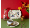 Skleněná karafa s potiskem ve tvaru citronů a listů je ideální nádobou na jarní limonádu. Karafa o objemu má víčko vyrobené z korku. Oživ svůj jarní stůl karafou z kolekce Dolce Vita! - Hlavní materiál: Sklo - Rozměry balení: 31x31x39,5 cm