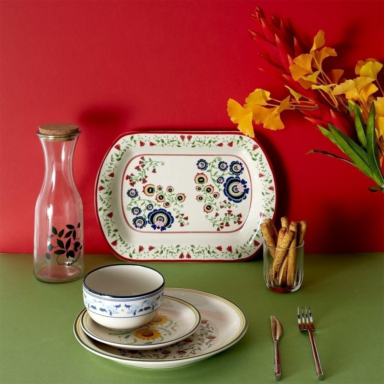 Skleněná karafa s potiskem ve tvaru citronů a listů je ideální nádobou na jarní limonádu. Karafa o objemu má víčko vyrobené z korku. Oživ svůj jarní stůl karafou z kolekce Dolce Vita! - Hlavní materiál: Sklo - Rozměry balení: 31x31x39,5 cm