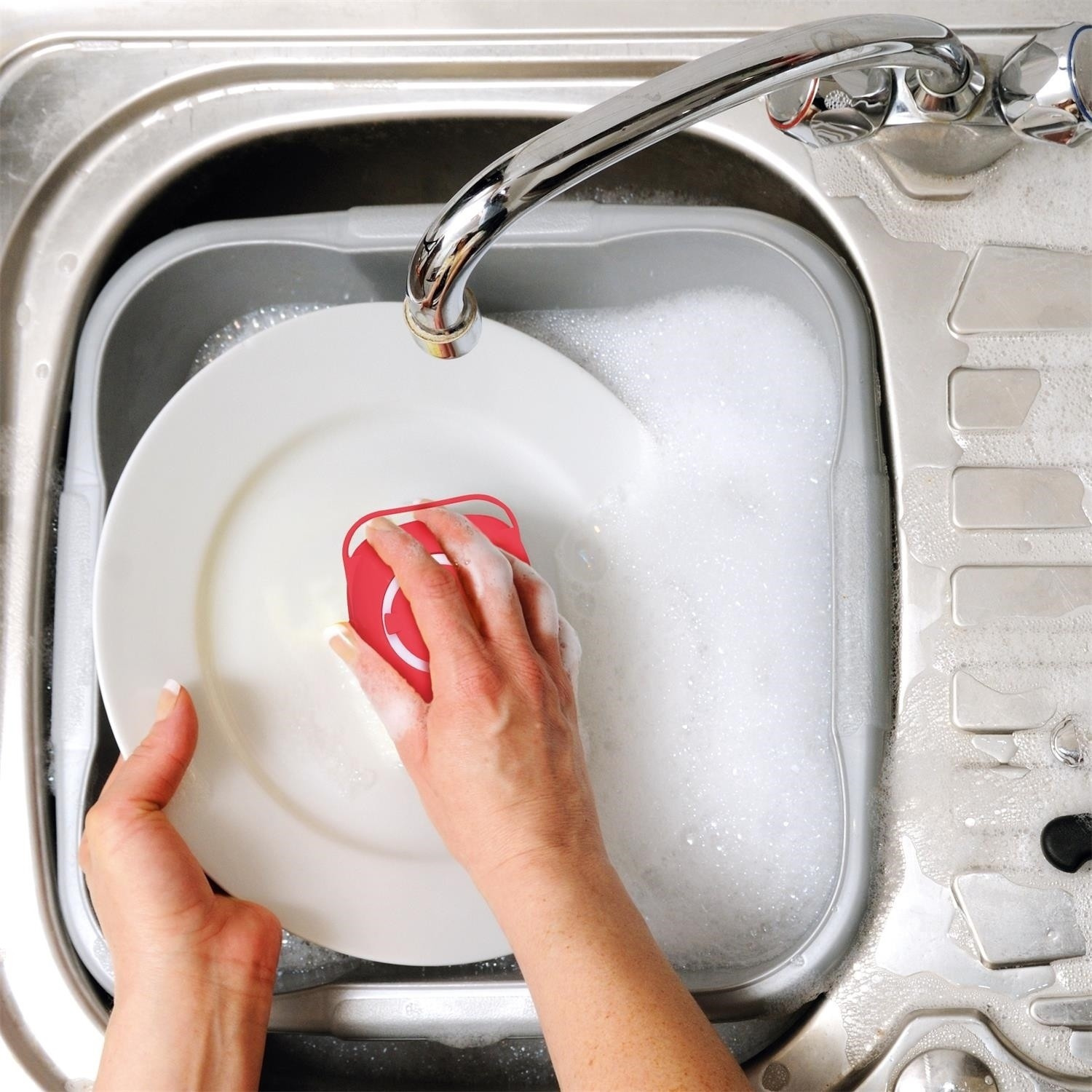 Tento kartáč na mytí nádobí má silikonovou nádrž, která zajišťuje dodatečnou účinnost! - Složení: silikon