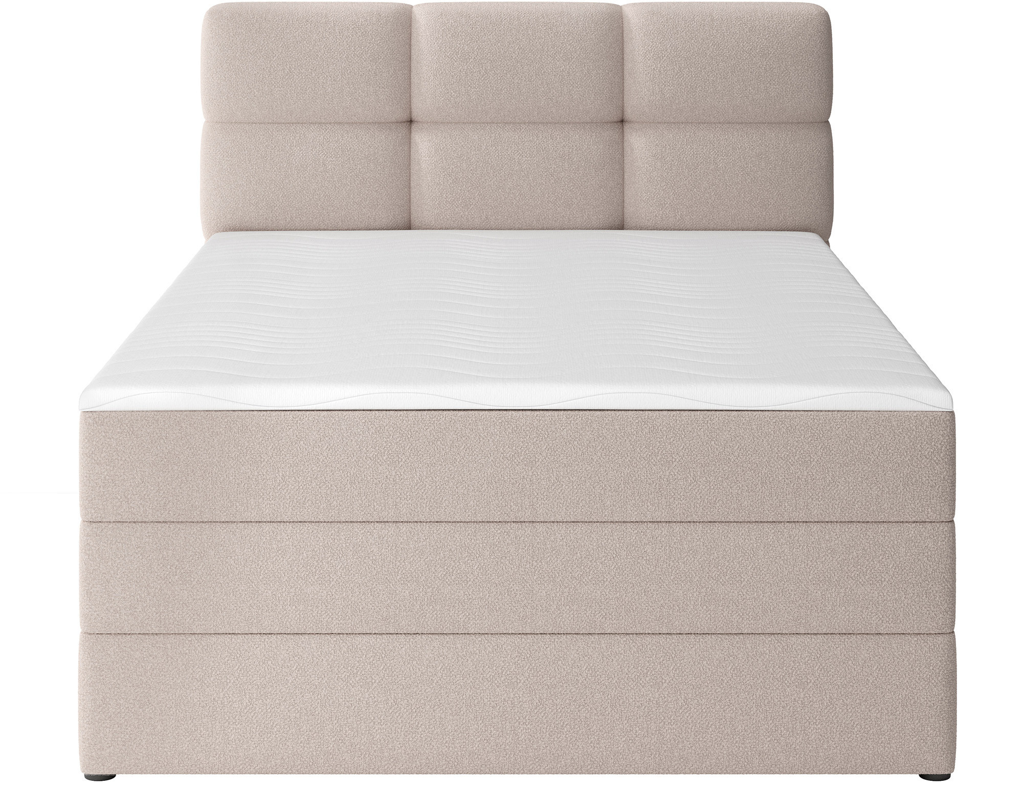 Kontinentální postel Kasped je moderní a funkční volbou pro každou ložnici, dostupná ve dvou velikostech: 215x121x108 cm a 215x141x108 cm, což umožňuje snadné přizpůsobení individuálním potřebám a rozměrům místnosti. Konstrukce postele je založena na pevném rámu vyrobeném z masivního dřeva a dřevotřísky, což zajišťuje dlouhotrvající stabilitu a odolnost. V srdci designu se nachází bonellová pružinová matrace, trvale připevněná k rámu, která poskytuje spolehlivou oporu těla a podporuje správnou cirkulaci vzduchu pro zdravý a ergonomický spánek. Navíc postel obsahuje dvě vrstvy vysoce kvalitní pěny – pěnu T2130 a pěnu T2540 – které v kombinaci s bonellovou pružinovou jednotkou zvyšují flexibilitu, pohodlí a přizpůsobení se konturám těla, což podporuje klidný a regenerační spánek. Celá struktura je definována čistými liniemi a moderní estetikou, doplněná černými nohami nábytku z odolného plastu, které přidávají vizuální lehkost a zároveň zajišťují konstrukční integritu. Vysoce praktickou funkcí je vestavěný úložný prostor na ložní prádlo, který poskytuje pohodlné místo pro uložení přikrývek, polštářů nebo jiných textilií, což pomáhá udržet ložnici čistou a uspořádanou. Postel Kasped kombinuje prvotřídní řemeslné zpracování, moderní design a každodenní funkčnost, což z ní činí ideální volbu jak pro moderní, tak i pro klasičtější interiérová uspořádání.