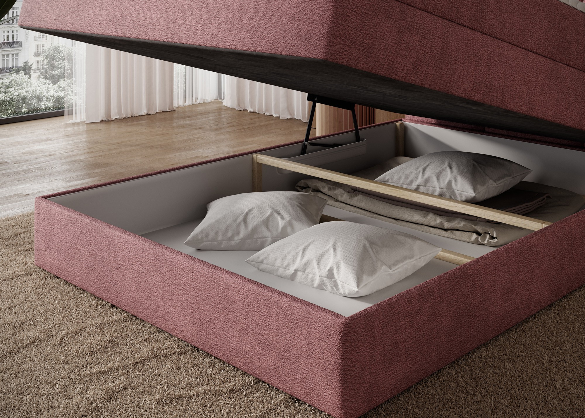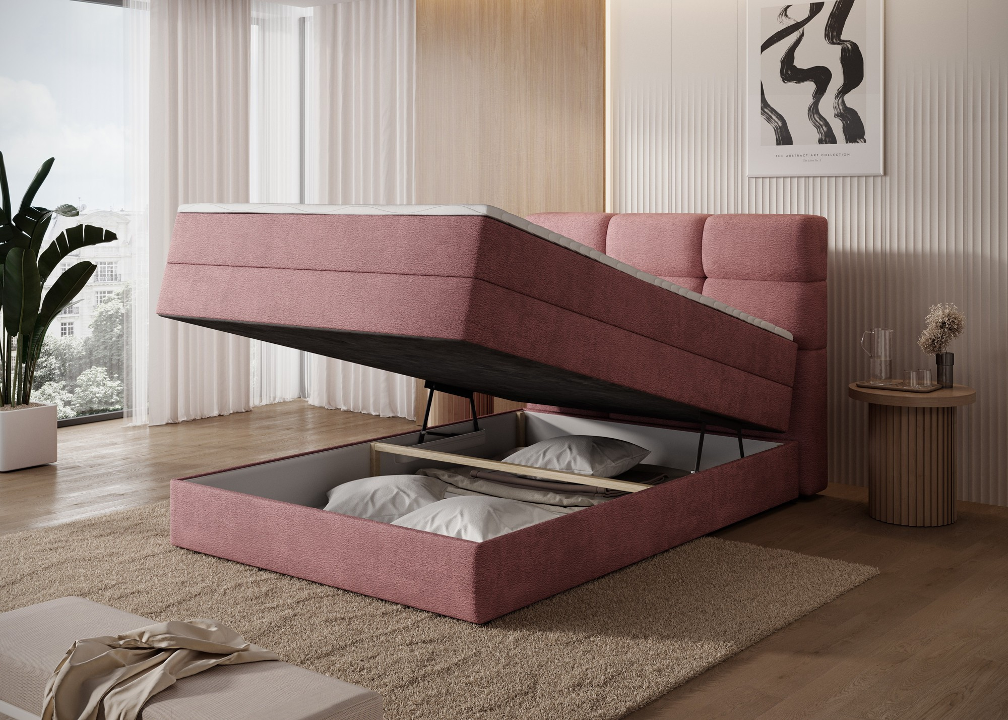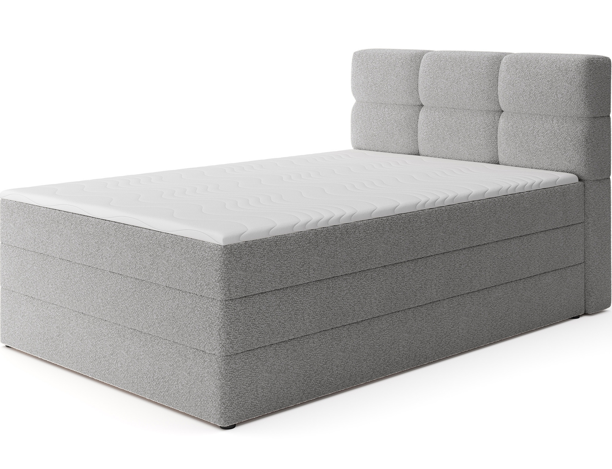 Kontinentální postel Kasped je moderní a funkční volbou pro každou ložnici, dostupná ve dvou velikostech: 215x121x108 cm a 215x141x108 cm, což umožňuje snadné přizpůsobení individuálním potřebám a rozměrům místnosti. Konstrukce postele je založena na pevném rámu vyrobeném z masivního dřeva a dřevotřísky, což zajišťuje dlouhotrvající stabilitu a odolnost. V srdci designu se nachází bonellová pružinová matrace, trvale připevněná k rámu, která poskytuje spolehlivou oporu těla a podporuje správnou cirkulaci vzduchu pro zdravý a ergonomický spánek. Navíc postel obsahuje dvě vrstvy vysoce kvalitní pěny – pěnu T2130 a pěnu T2540 – které v kombinaci s bonellovou pružinovou jednotkou zvyšují flexibilitu, pohodlí a přizpůsobení se konturám těla, což podporuje klidný a regenerační spánek. Celá struktura je definována čistými liniemi a moderní estetikou, doplněná černými nohami nábytku z odolného plastu, které přidávají vizuální lehkost a zároveň zajišťují konstrukční integritu. Vysoce praktickou funkcí je vestavěný úložný prostor na ložní prádlo, který poskytuje pohodlné místo pro uložení přikrývek, polštářů nebo jiných textilií, což pomáhá udržet ložnici čistou a uspořádanou. Postel Kasped kombinuje prvotřídní řemeslné zpracování, moderní design a každodenní funkčnost, což z ní činí ideální volbu jak pro moderní, tak i pro klasičtější interiérová uspořádání.