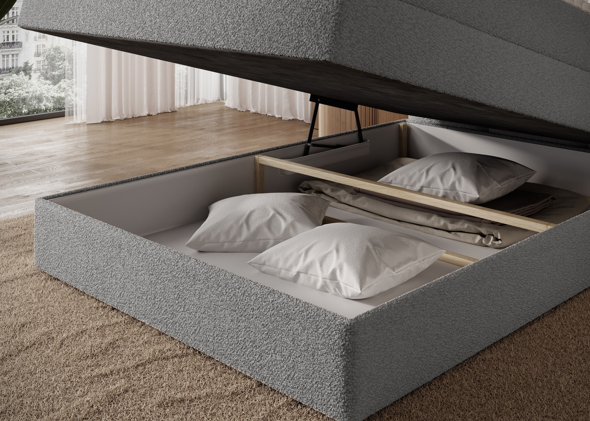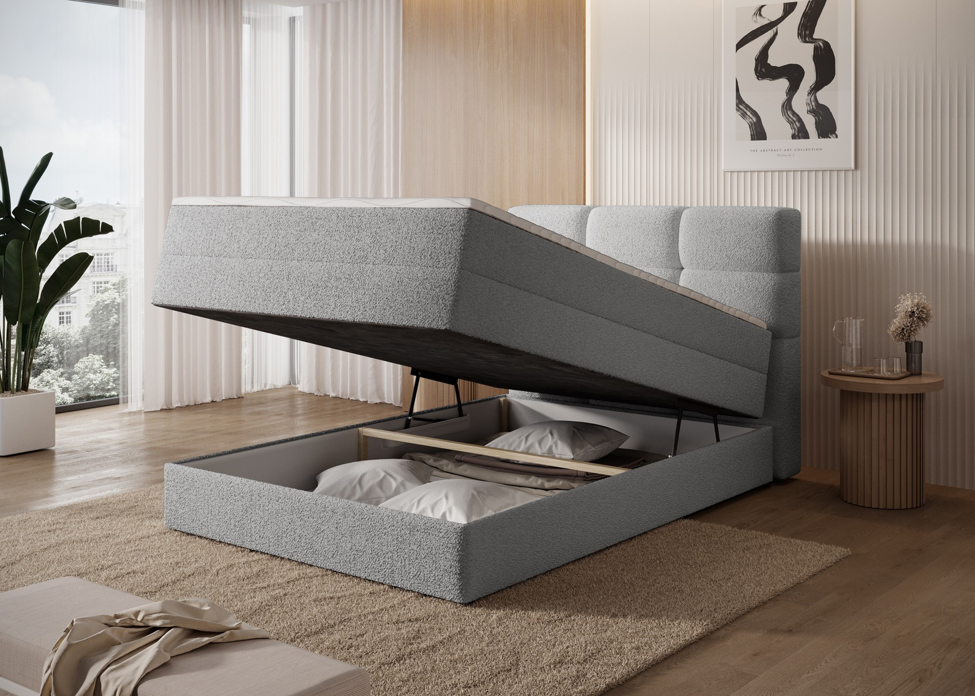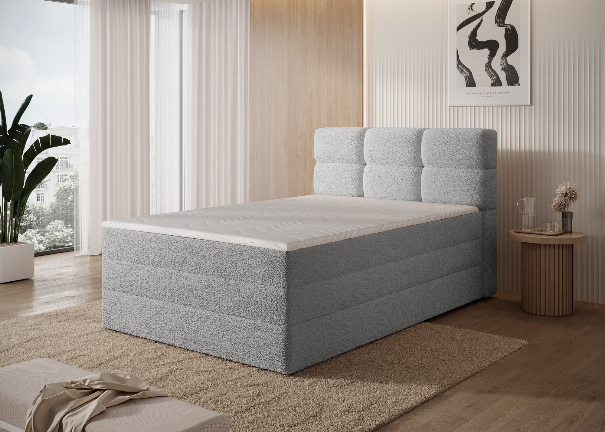 Kontinentální postel Kasped je moderní a funkční volbou pro každou ložnici, dostupná ve dvou velikostech: 215x121x108 cm a 215x141x108 cm, což umožňuje snadné přizpůsobení individuálním potřebám a rozměrům místnosti. Konstrukce postele je založena na pevném rámu vyrobeném z masivního dřeva a dřevotřísky, což zajišťuje dlouhotrvající stabilitu a odolnost. V srdci designu se nachází bonellová pružinová matrace, trvale připevněná k rámu, která poskytuje spolehlivou oporu těla a podporuje správnou cirkulaci vzduchu pro zdravý a ergonomický spánek. Navíc postel obsahuje dvě vrstvy vysoce kvalitní pěny – pěnu T2130 a pěnu T2540 – které v kombinaci s bonellovou pružinovou jednotkou zvyšují flexibilitu, pohodlí a přizpůsobení se konturám těla, což podporuje klidný a regenerační spánek. Celá struktura je definována čistými liniemi a moderní estetikou, doplněná černými nohami nábytku z odolného plastu, které přidávají vizuální lehkost a zároveň zajišťují konstrukční integritu. Vysoce praktickou funkcí je vestavěný úložný prostor na ložní prádlo, který poskytuje pohodlné místo pro uložení přikrývek, polštářů nebo jiných textilií, což pomáhá udržet ložnici čistou a uspořádanou. Postel Kasped kombinuje prvotřídní řemeslné zpracování, moderní design a každodenní funkčnost, což z ní činí ideální volbu jak pro moderní, tak i pro klasičtější interiérová uspořádání.