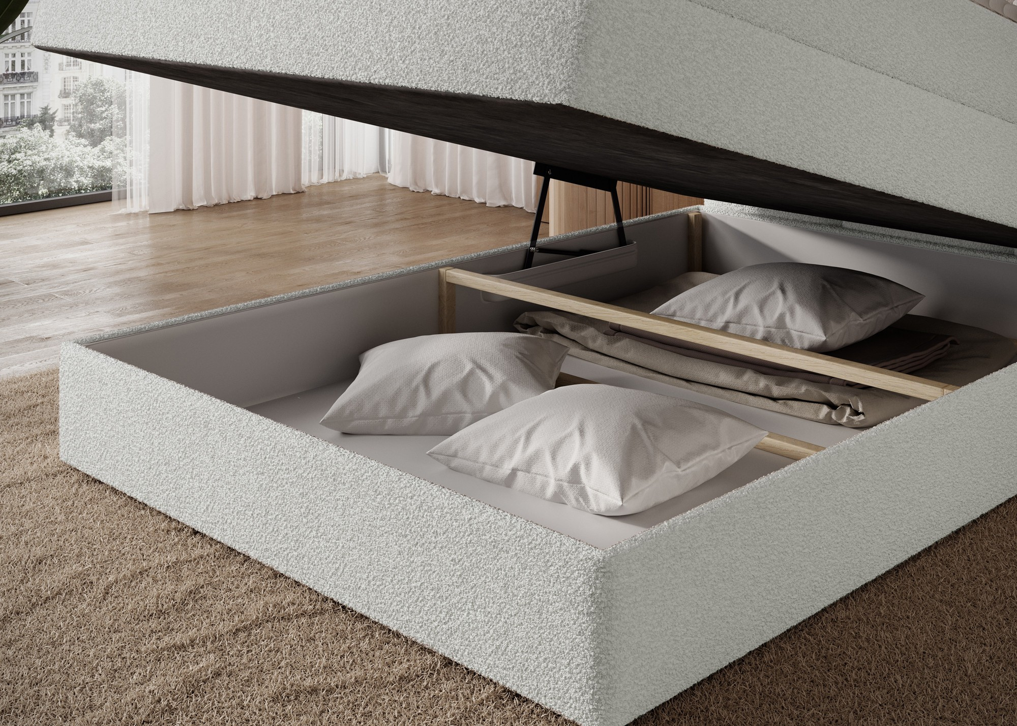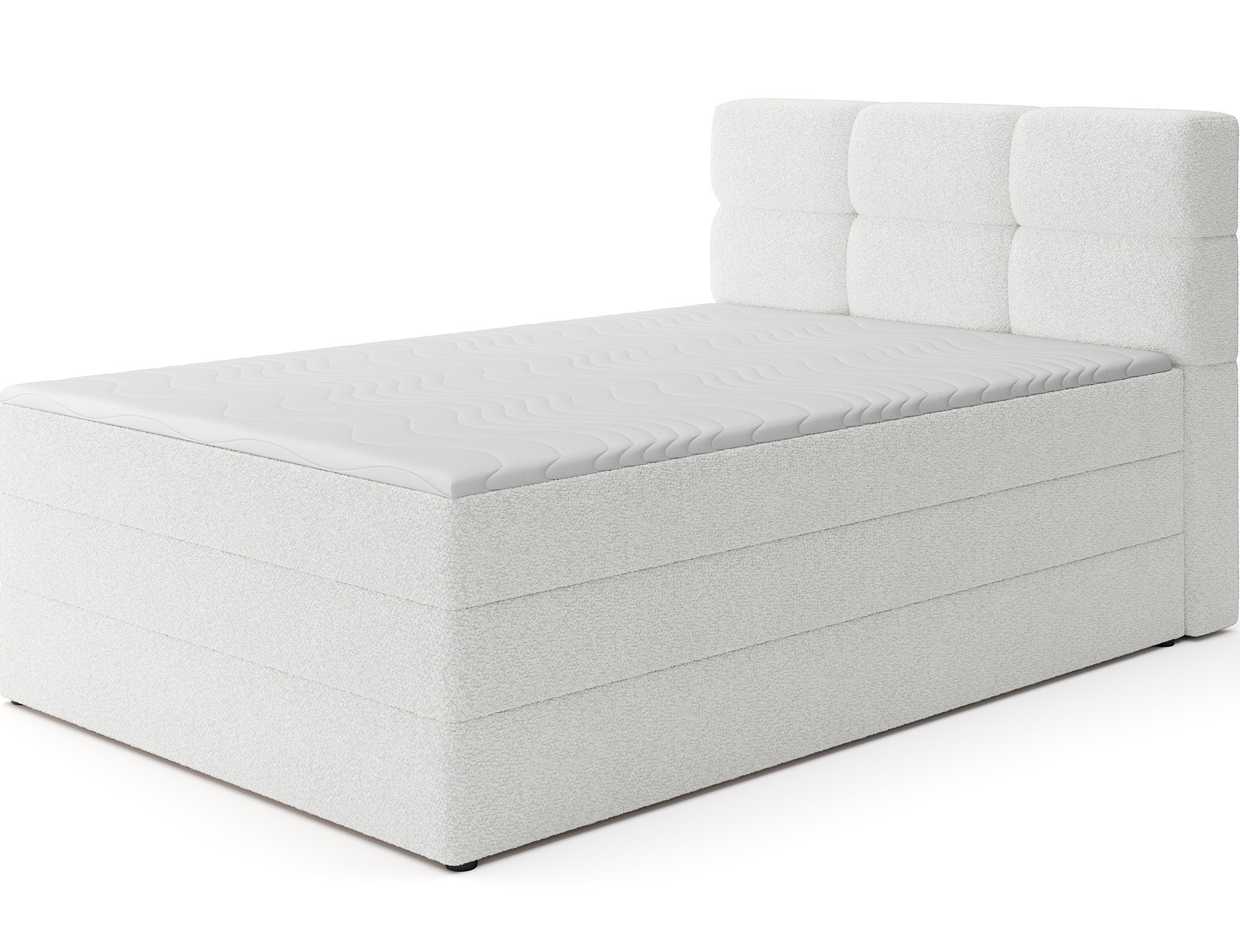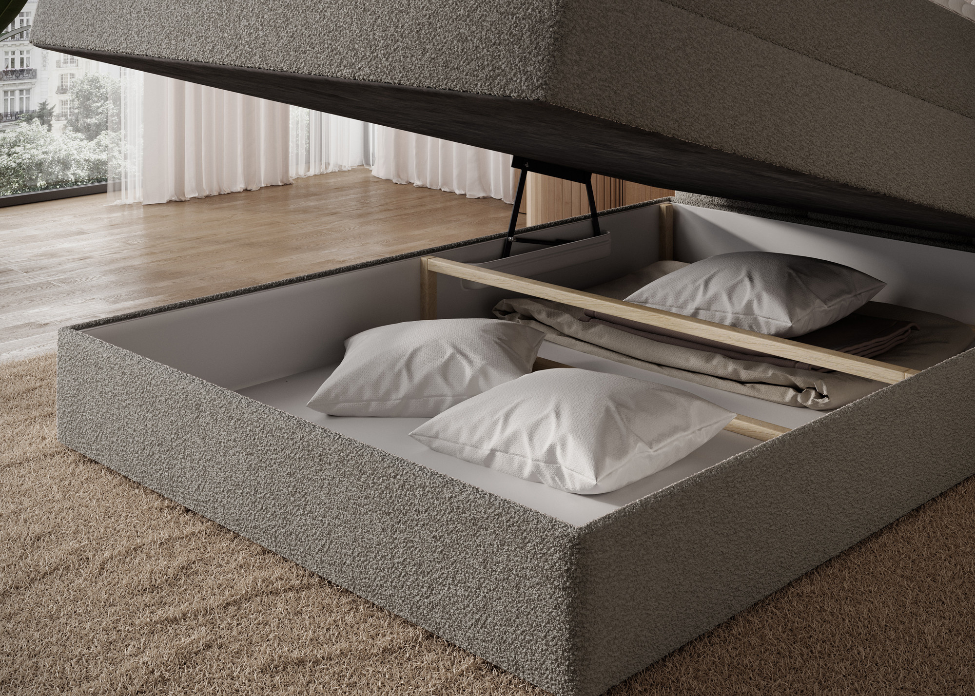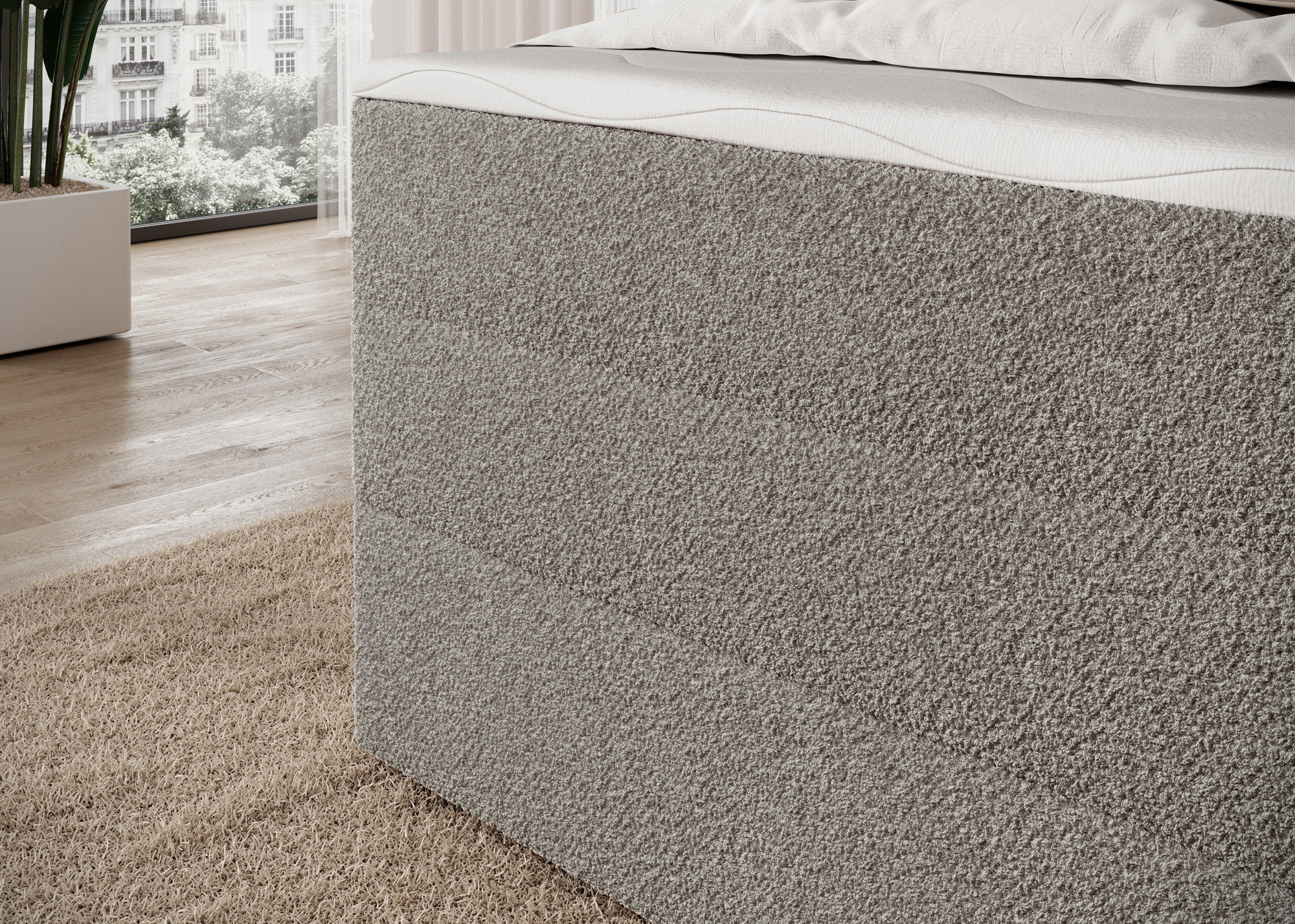 Kontinentální postel Kasped je moderní a funkční volbou pro každou ložnici, dostupná ve dvou velikostech: 215x121x108 cm a 215x141x108 cm, což umožňuje snadné přizpůsobení individuálním potřebám a rozměrům místnosti. Konstrukce postele je založena na pevném rámu vyrobeném z masivního dřeva a dřevotřísky, což zajišťuje dlouhotrvající stabilitu a odolnost. V srdci designu se nachází bonellová pružinová matrace, trvale připevněná k rámu, která poskytuje spolehlivou oporu těla a podporuje správnou cirkulaci vzduchu pro zdravý a ergonomický spánek. Navíc postel obsahuje dvě vrstvy vysoce kvalitní pěny – pěnu T2130 a pěnu T2540 – které v kombinaci s bonellovou pružinovou jednotkou zvyšují flexibilitu, pohodlí a přizpůsobení se konturám těla, což podporuje klidný a regenerační spánek. Celá struktura je definována čistými liniemi a moderní estetikou, doplněná černými nohami nábytku z odolného plastu, které přidávají vizuální lehkost a zároveň zajišťují konstrukční integritu. Vysoce praktickou funkcí je vestavěný úložný prostor na ložní prádlo, který poskytuje pohodlné místo pro uložení přikrývek, polštářů nebo jiných textilií, což pomáhá udržet ložnici čistou a uspořádanou. Postel Kasped kombinuje prvotřídní řemeslné zpracování, moderní design a každodenní funkčnost, což z ní činí ideální volbu jak pro moderní, tak i pro klasičtější interiérová uspořádání.