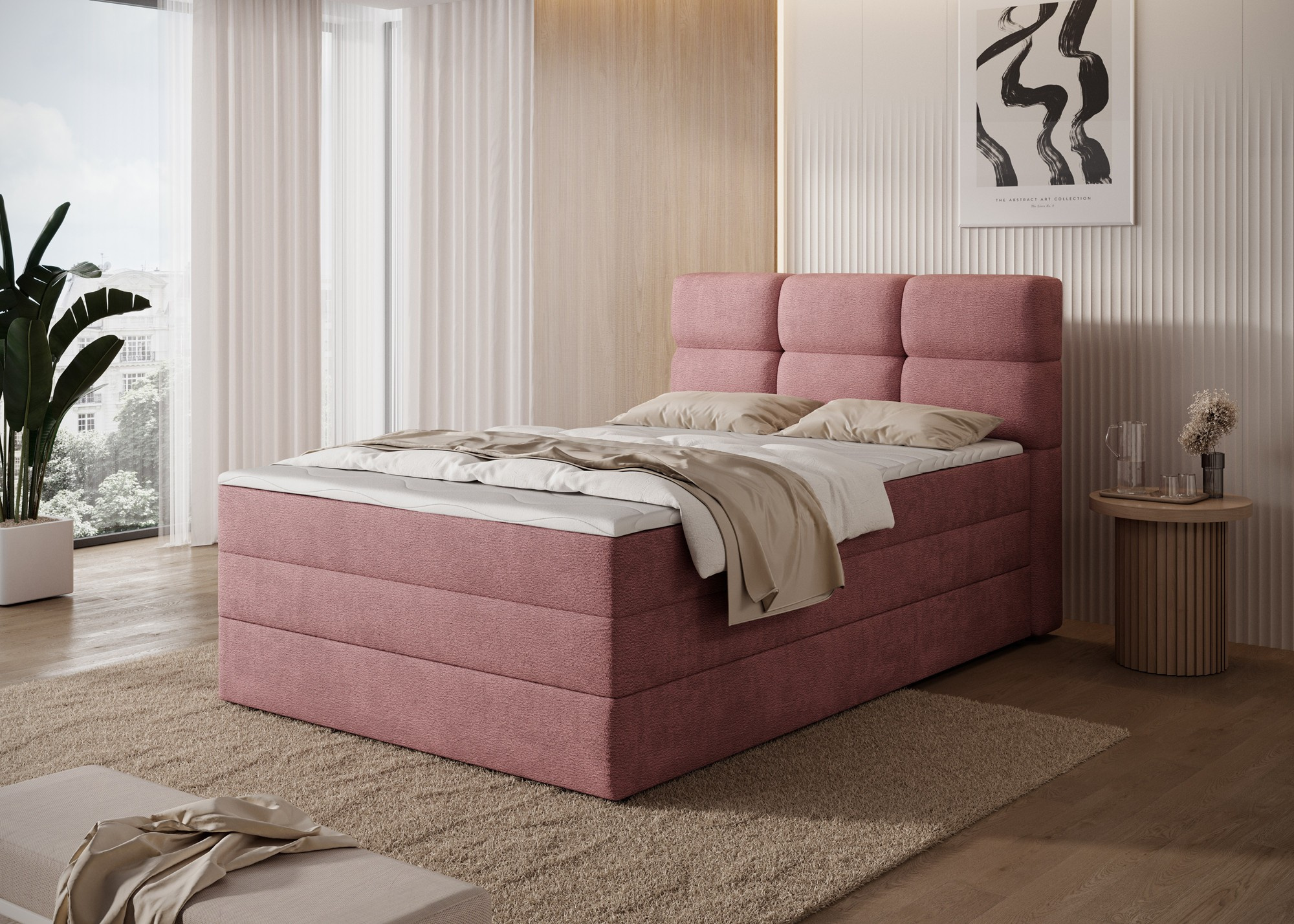Kontinentální postel Kasped je moderní a funkční volbou pro každou ložnici, dostupná ve dvou velikostech: 215x121x108 cm a 215x141x108 cm, což umožňuje snadné přizpůsobení individuálním potřebám a rozměrům místnosti. Konstrukce postele je založena na pevném rámu vyrobeném z masivního dřeva a dřevotřísky, což zajišťuje dlouhotrvající stabilitu a odolnost. V srdci designu se nachází bonellová pružinová matrace, trvale připevněná k rámu, která poskytuje spolehlivou oporu těla a podporuje správnou cirkulaci vzduchu pro zdravý a ergonomický spánek. Navíc postel obsahuje dvě vrstvy vysoce kvalitní pěny – pěnu T2130 a pěnu T2540 – které v kombinaci s bonellovou pružinovou jednotkou zvyšují flexibilitu, pohodlí a přizpůsobení se konturám těla, což podporuje klidný a regenerační spánek. Celá struktura je definována čistými liniemi a moderní estetikou, doplněná černými nohami nábytku z odolného plastu, které přidávají vizuální lehkost a zároveň zajišťují konstrukční integritu. Vysoce praktickou funkcí je vestavěný úložný prostor na ložní prádlo, který poskytuje pohodlné místo pro uložení přikrývek, polštářů nebo jiných textilií, což pomáhá udržet ložnici čistou a uspořádanou. Postel Kasped kombinuje prvotřídní řemeslné zpracování, moderní design a každodenní funkčnost, což z ní činí ideální volbu jak pro moderní, tak i pro klasičtější interiérová uspořádání.