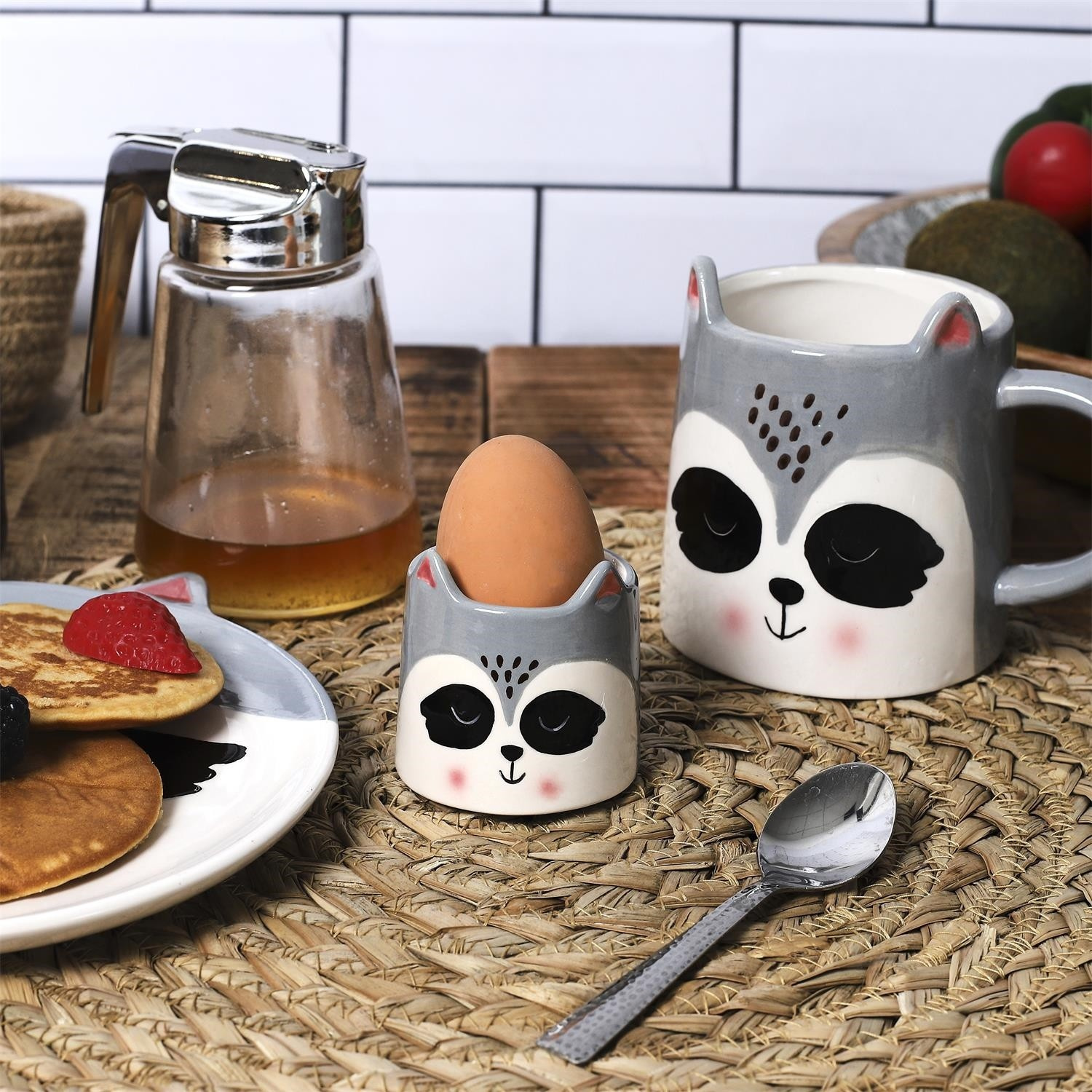 Podstavec na vajíčko ve tvaru mývala rozhodně přesvědčí naše děti k jídlu tak zdravé potraviny, jakou je vejce naměkko. Podložka vyrobená z keramiky je efektní a její tvar se lehce rozšiřující směrem dolů zaručuje, že se snadno nepřevrátí.