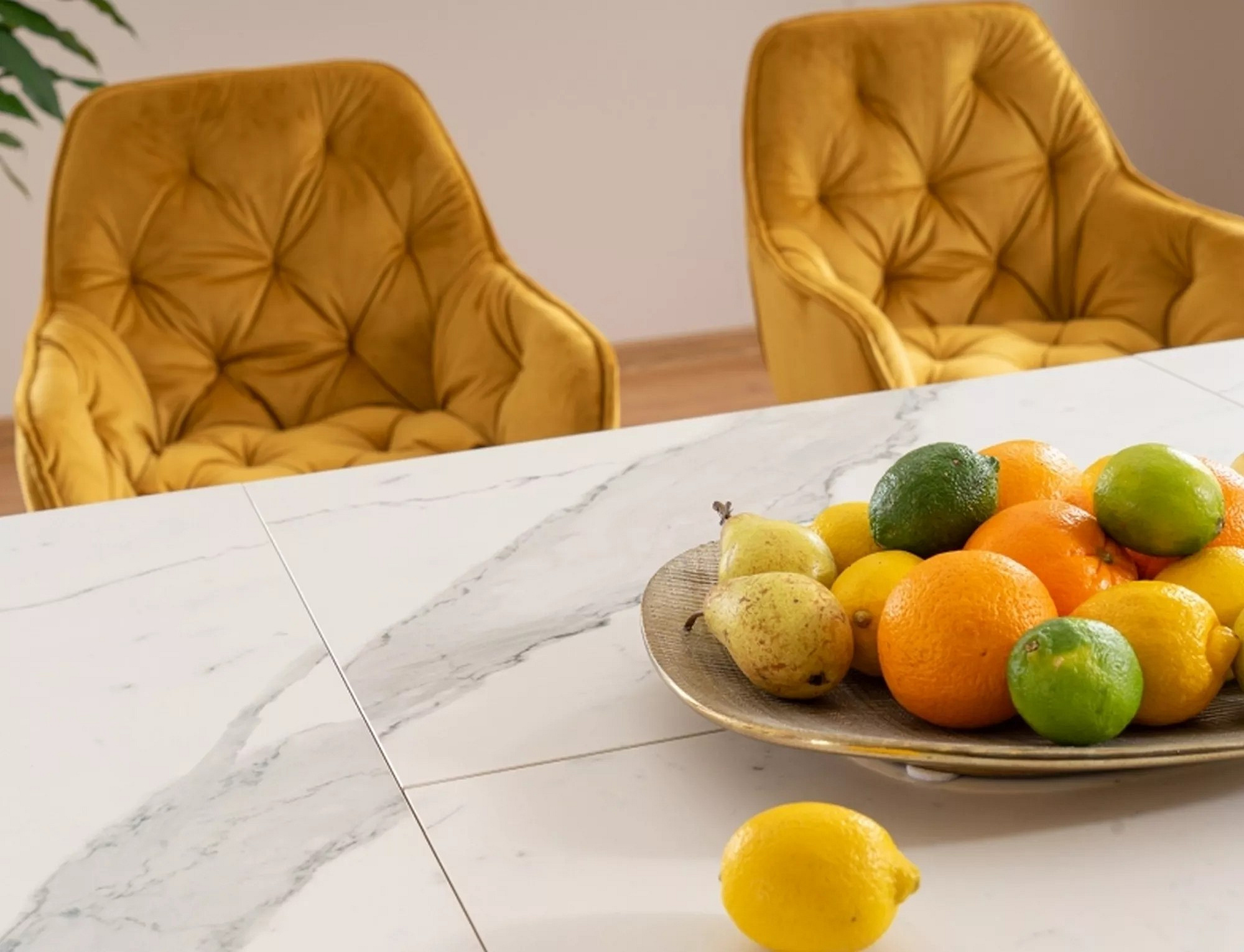Jídelní stůl ARMANI CERAMIC, efekt bílého mramoru/černý mat