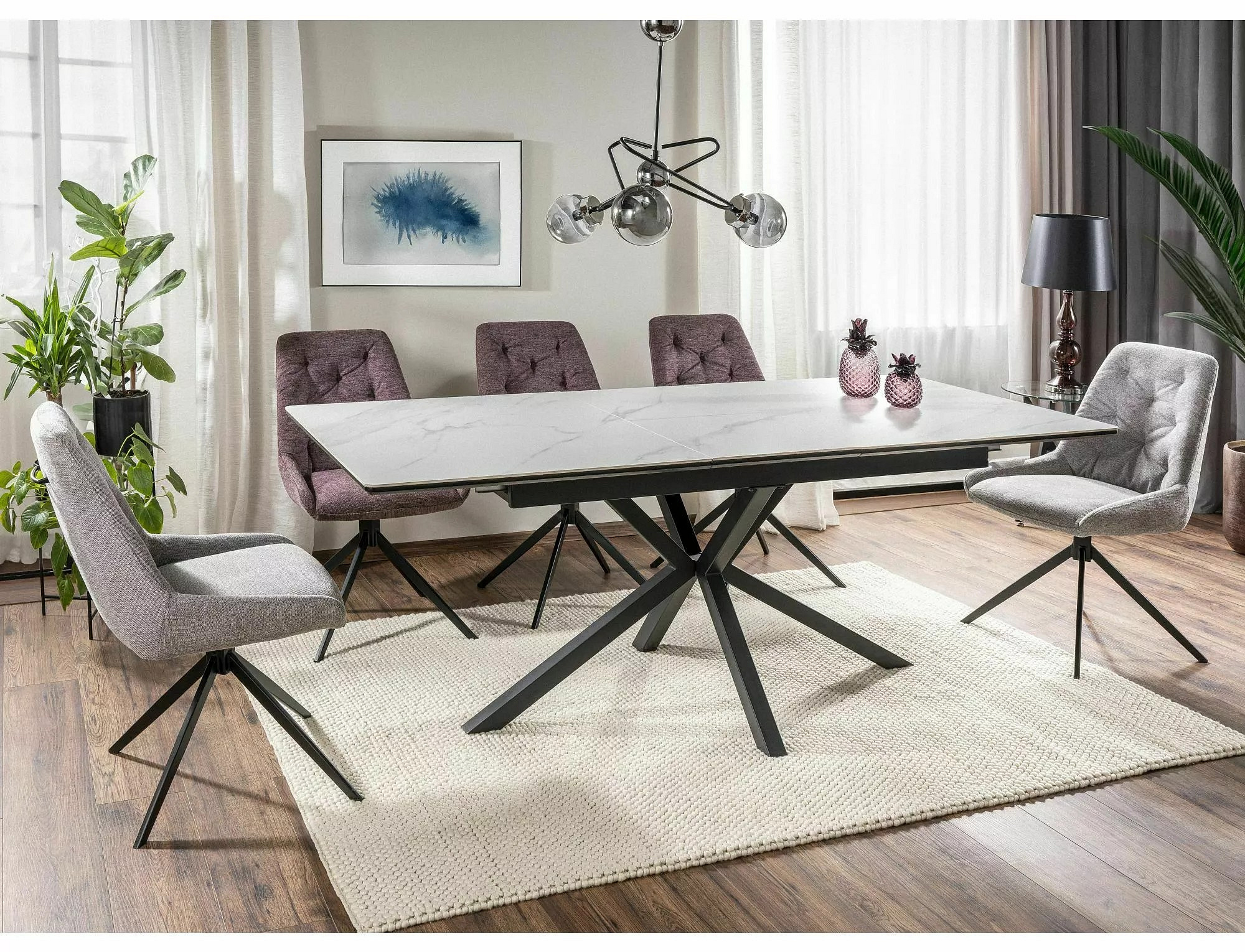 Jídelní stůl LOGAN CERAMIC, Efekt bílého mramoru mat/Černý mat