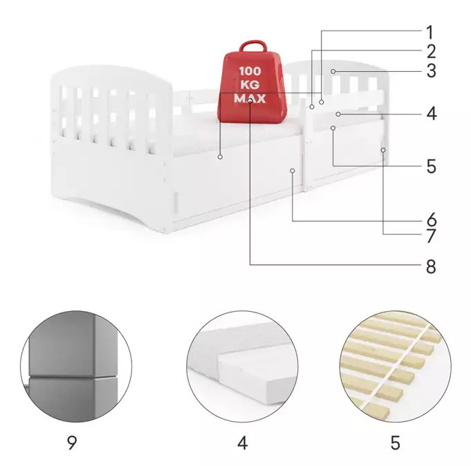 - Maximální zatížení postele je 100 kg