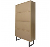 Regál na knihy ze série Calypso je nadčasový nábytek, který se osvědčí v obývacím pokoji plném knih. Regál vyrobený z odolné MDF desky s dýhou imitující dřevo. Regál se vyznačuje nesymetrickými policemi a skříňkou se 2 dvířky. Na čelní straně je viditelná oblouková, nesymetrická ozdoba. Nohy regálů jsou práškově lakované na černo dvě kovové lyžiny. Vysoké nohy regálu umožňují snadné čištění pod nábytkem. Každý vysavač by měl být schopen zajet pod regál. Regál vyžaduje montáž. Max. zatížení na polici 5 kg Váha nábytku 42,2 kg
