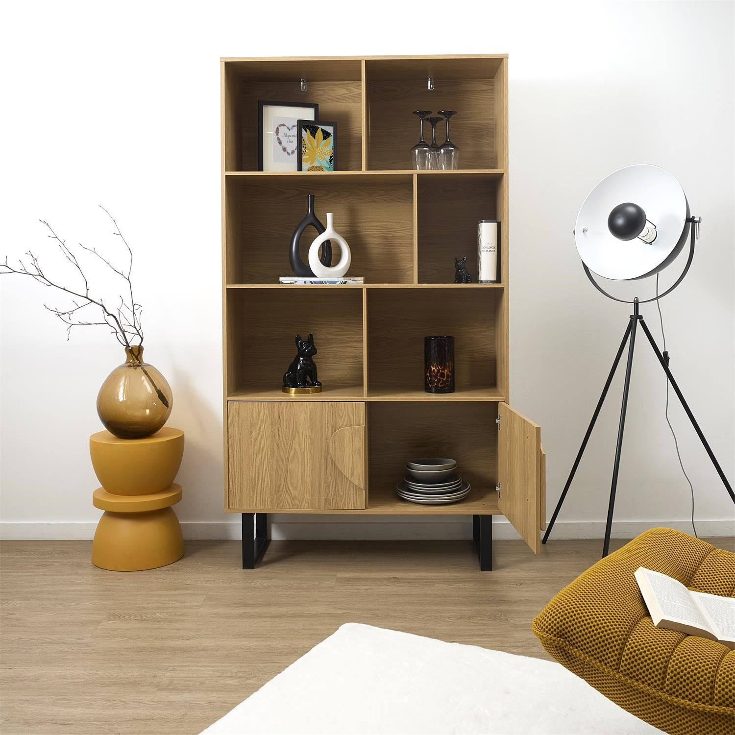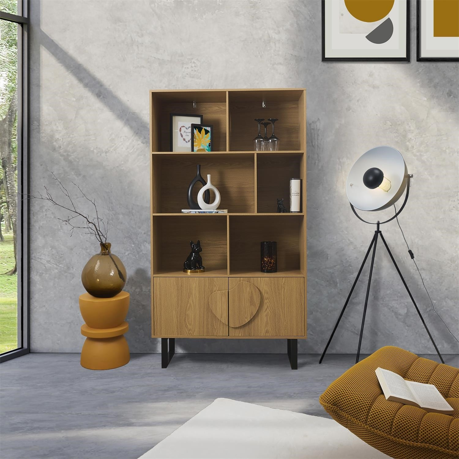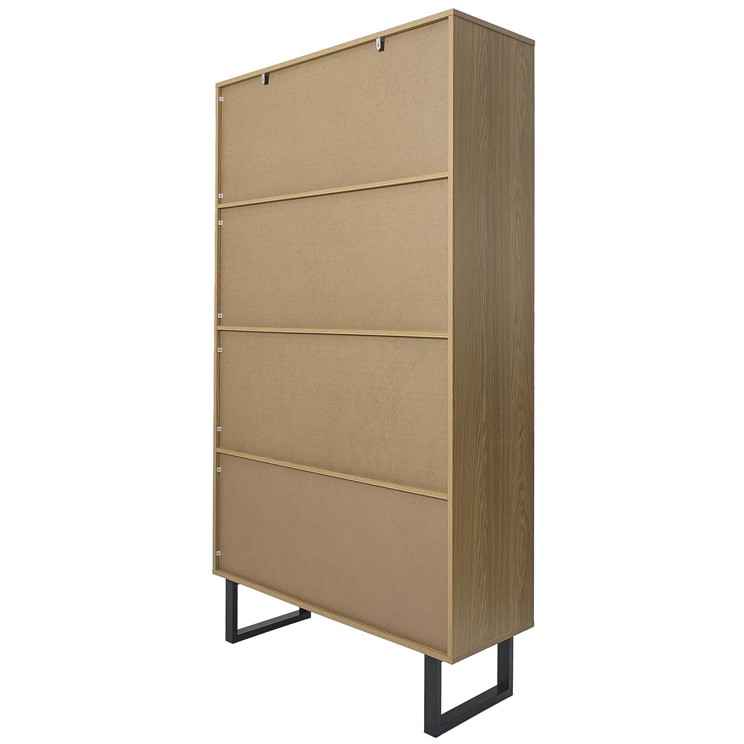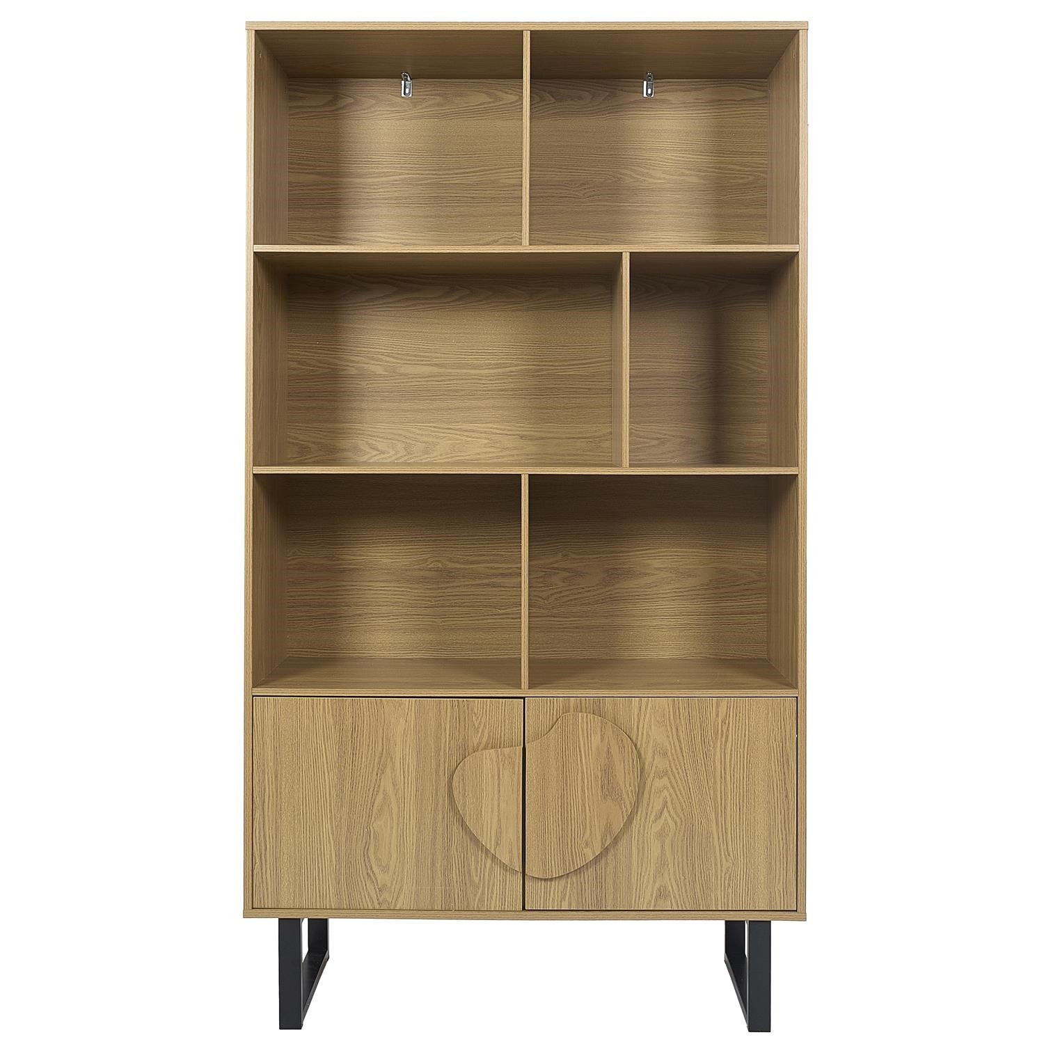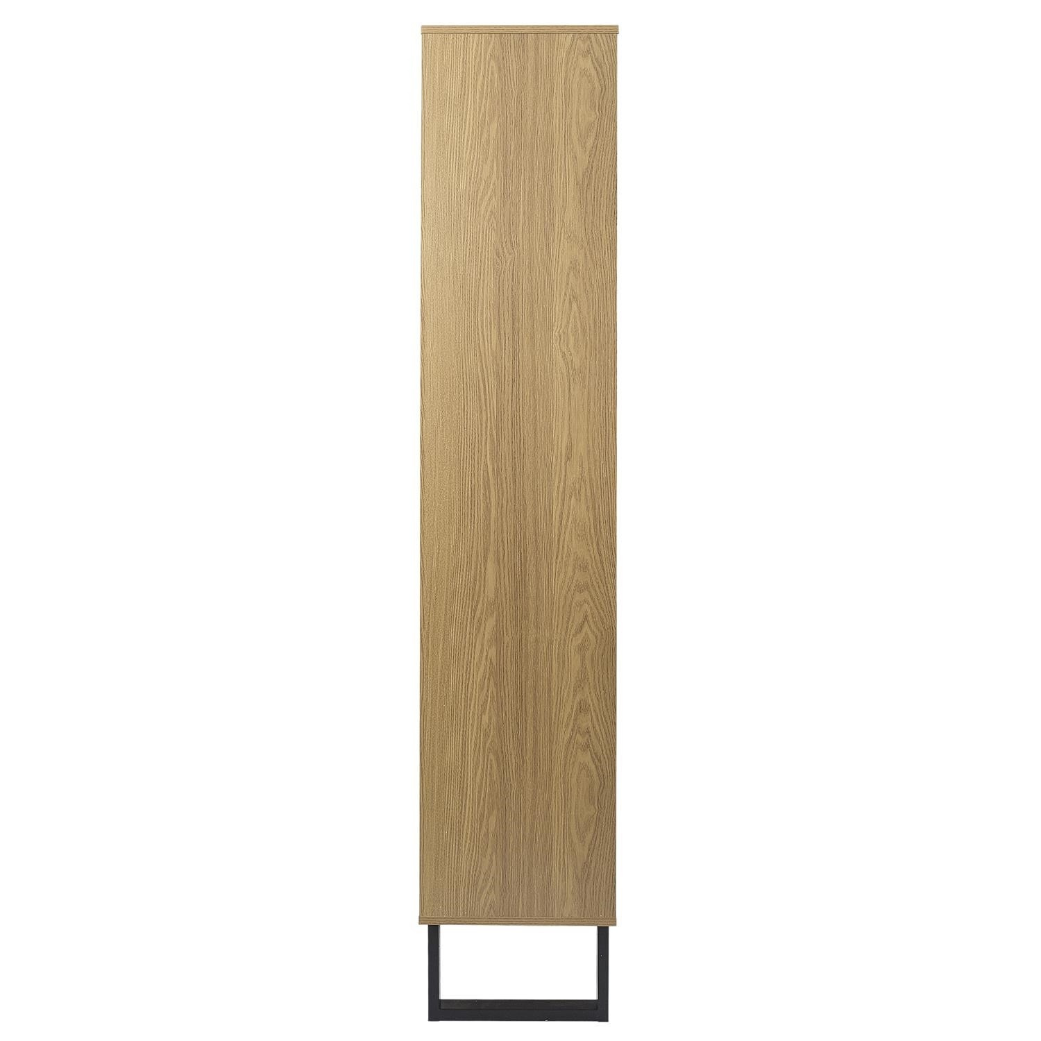Regál na knihy ze série Calypso je nadčasový nábytek, který se osvědčí v obývacím pokoji plném knih. Regál vyrobený z odolné MDF desky s dýhou imitující dřevo. Regál se vyznačuje nesymetrickými policemi a skříňkou se 2 dvířky. Na čelní straně je viditelná oblouková, nesymetrická ozdoba. Nohy regálů jsou práškově lakované na černo dvě kovové lyžiny. Vysoké nohy regálu umožňují snadné čištění pod nábytkem. Každý vysavač by měl být schopen zajet pod regál. Regál vyžaduje montáž. Max. zatížení na polici 5 kg Váha nábytku 42,2 kg
