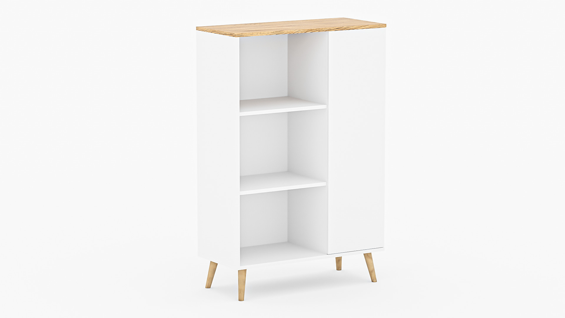 Regál FONZI ve skandinávském stylu je jednoduchý, a přitom mimořádně funkční nábytek. Regál má dvířka a police, což z něj činí pohodlné místo pro ukládání. FONZI se jistě hodí do většiny aranžmá, dodávajíc místnosti moderní a elegantní design.