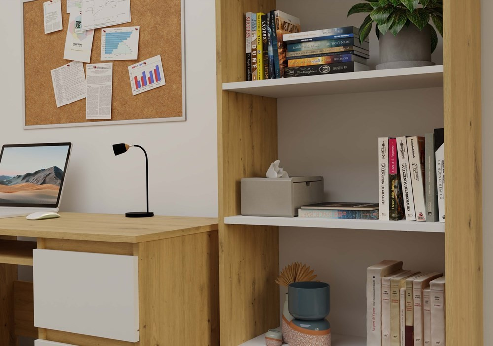 Nadčasové knihovny v trendy barvách série Malvína najdou díky své všestrannosti uplatnění jak v kanceláři, tak i v obývacích prostorách vašeho bytu. Knihovna s praktickými policemi je perfektním řešením pro ukládání knih, hraček, dekorací i firemních materiálů. Nábytek je vyrobený z pevné oboustranně laminované desky, hrany jsou povrchově upraveny ABS plastem - vyznačují se vysokou mechanickou a chemickou odolností.