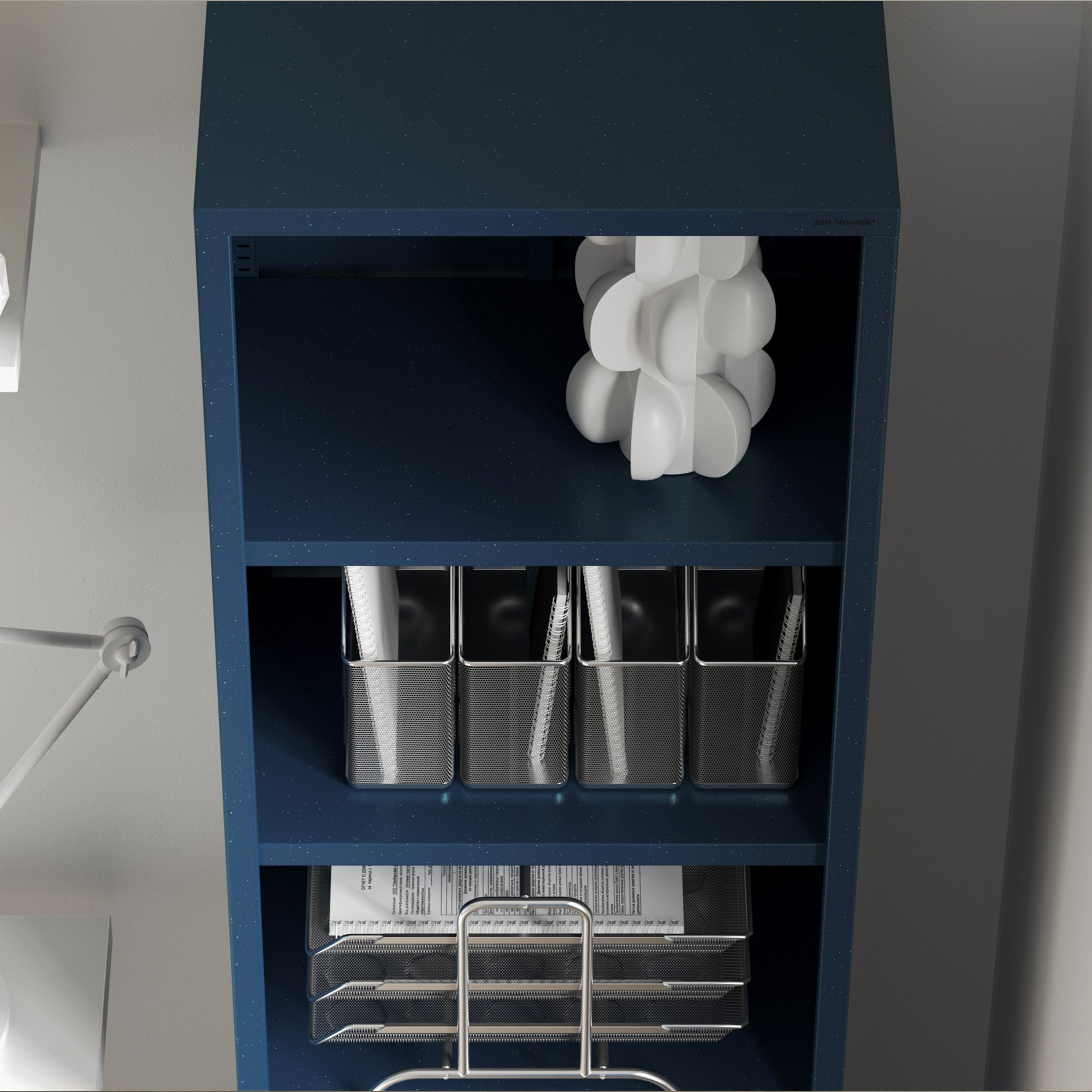 Knihovna MARIO je vyrobena z kvalitního kovu o tloušťce 0,6 mm, což zaručuje její vysokou pevnost a stabilitu. Nemusíte se obávat, že by se knihovna prohýbala pod tíhou knih nebo dekorací. Je navržena tak, aby vydržela i maximální zatížení a sloužila vám po mnoho let.