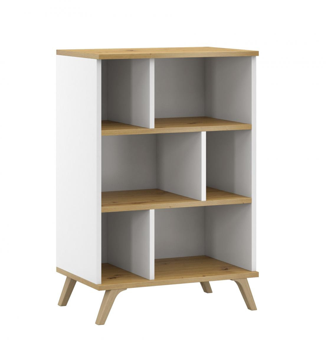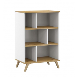 Knihovna policová Roky 9 je vyrobena z lamina v krásném dekoru bílá a dub Artisan. Lamino tloušťky 18 mm je odolné a je zakončeno lištou ABS. Jistě oceníte i snadnou údržbu. Knihovna je velmi praktická a police pojmou vše potřebné. Rukojeti v dekóru dřeva jsou vyrobeny z plastu. Je dodávána v demontu. Součástí balení je montážní návod včetně všech spojovacích prvků.