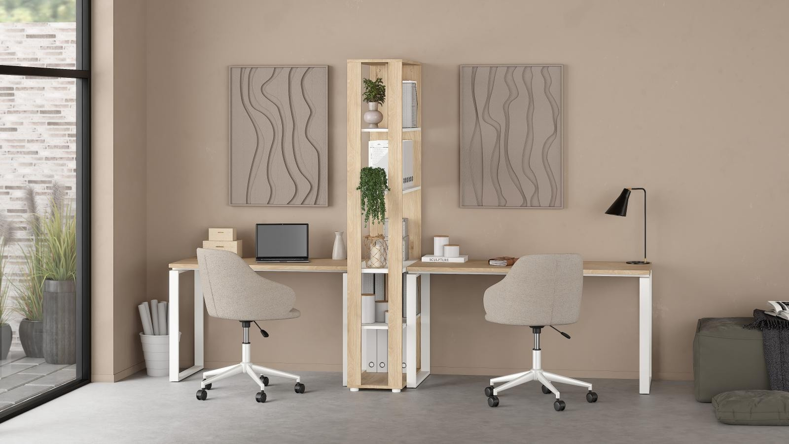 Zažijte dokonalý skandinávský design s modulární kolekcí Sigal - moderním, všestranným řešením pro všechny kancelářské nebo obytné prostory. Kolekce nabízí precizně zpracované kousky s čistými liniemi navržené tak, aby maximalizovaly využití místnosti a poskytovaly styl a funkčnost bez ohledu na velikost vašeho prostoru. Tato široká knihovna může sloužit jako praktický předěl místnosti mezi dvěma stoly nebo jako rozšíření kancelářského stolu. Navíc ji lze připevnit na stěnu, což dále zvyšuje její přizpůsobivost různým prostředím.