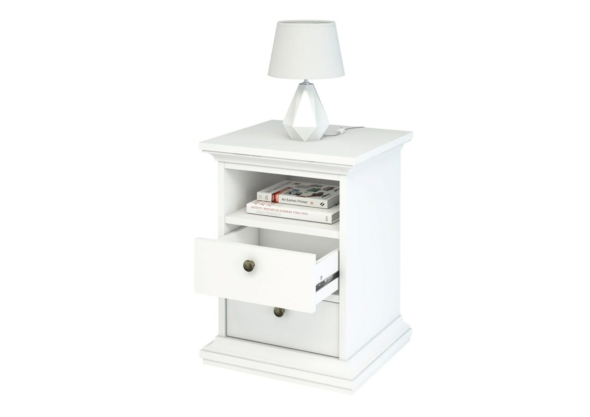 Noční stolek Provence poskytuje dostatek prostoru na lamičku, budík nebo knihu. Je vybavený praktickými zásuvkami, do kterých si můžete uložit drobnosti, které potřebujete mít vždy blízko po ruce. Stolek je dodávaný v demontu. Součástí je montážní návod včetně všech spojovacích prvků. Cena je uvedena za noční stolek bez doplňků a dekorací.