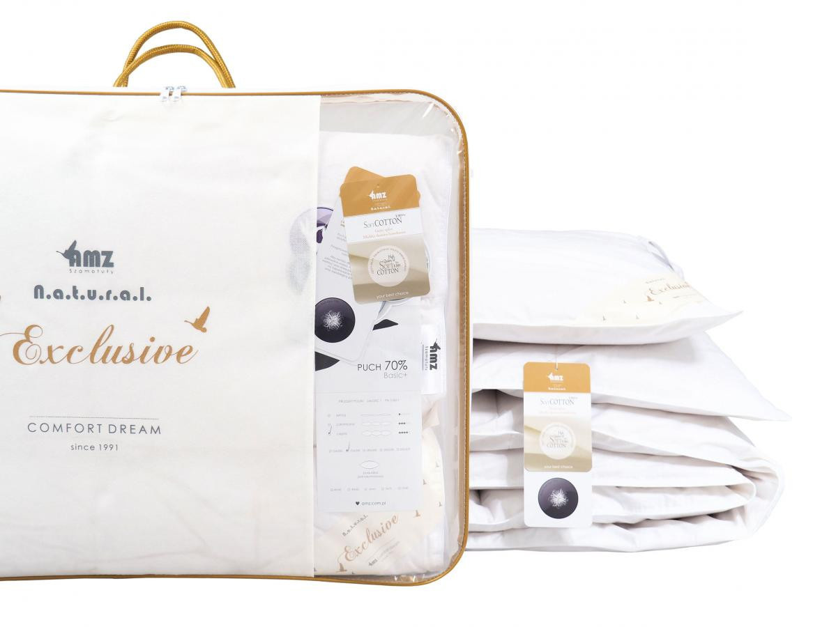 PUCHDRA 200x220 celoroční POLSKI PUCH 70% Soft Cotton je jedinečná tkanina s hustou vazbou, vyrobená z nejkvalitnějších bavlněných vláken, která zajišťuje odolnost a pohodlí. Díky speciální impregnaci je jeho vnitřní strana ještě pevnější a zvyšuje kvalitu spánku díky měkkosti, která příjemně obklopuje tělo. Její lehkost získaná z jemných přízí zároveň umožňuje vytvářet lehčí výrobky, zatímco přirozená prodyšnost bavlny podporuje cirkulaci vzduchu, reguluje vlhkost a zabraňuje přehřátí těla. Přikrývky a polštáře jsou baleny v elegantních polstrovaných taškách a funkčních prodyšných sáčcích, které je nejen chrání při přepravě a skladování, ale také zvyšují jejich estetickou hodnotu.