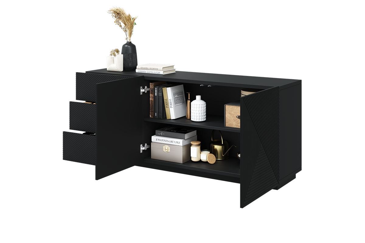 167 cm Komoda Asha - matná černá, šířka: 167, výška: 71, hloubka: 43