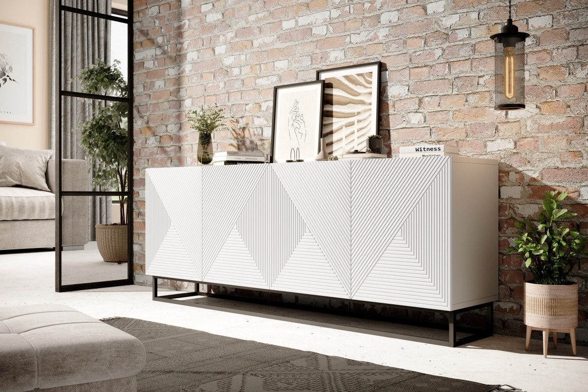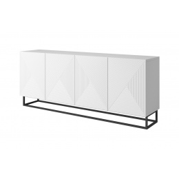 Komoda Asha 200 cm s drážkovaným čelem na kovovém rámu - bílý mat, šířka: 200, výška: 81, hloubka: 43, výška nožiček: 16