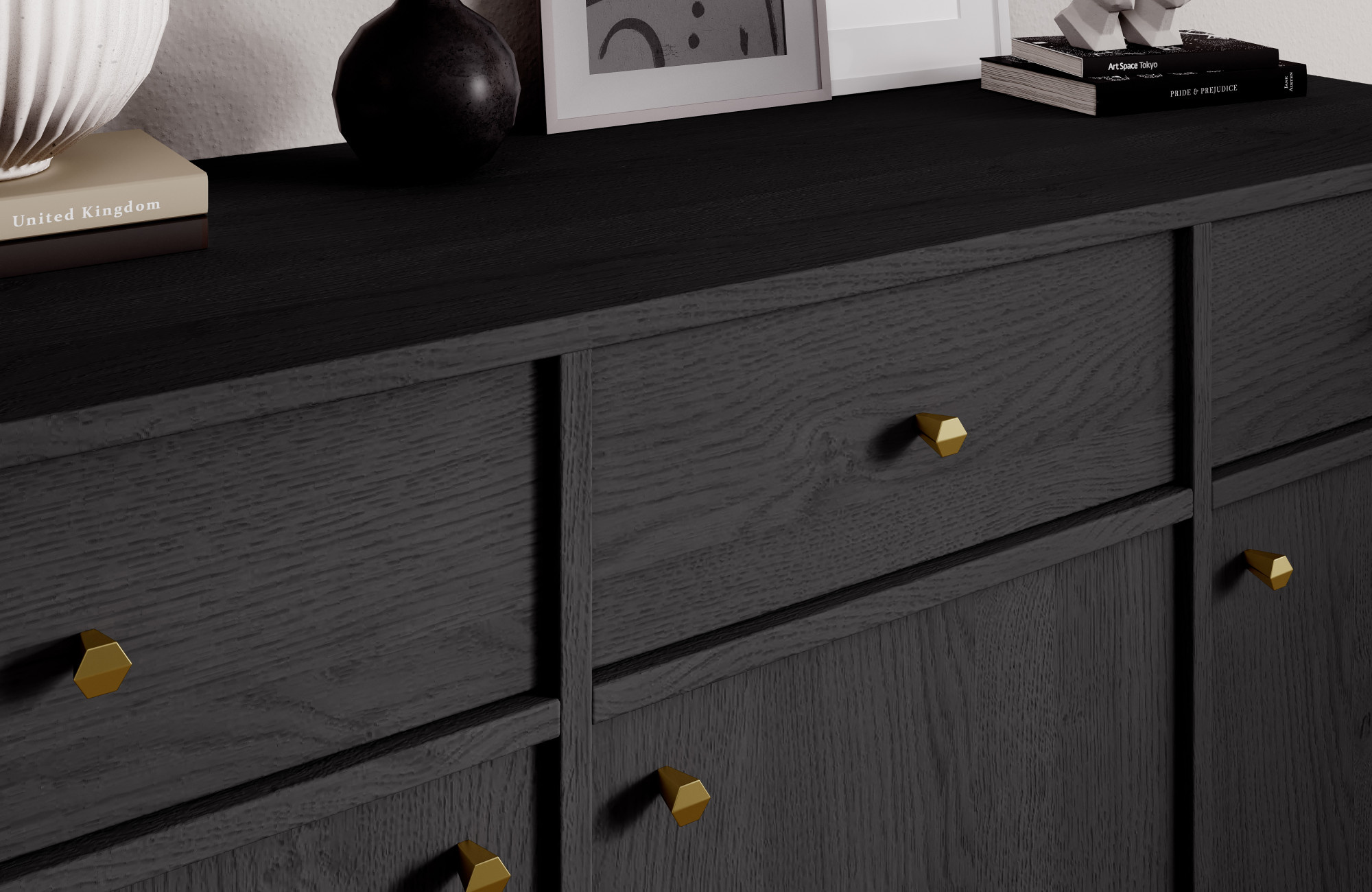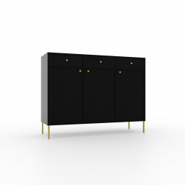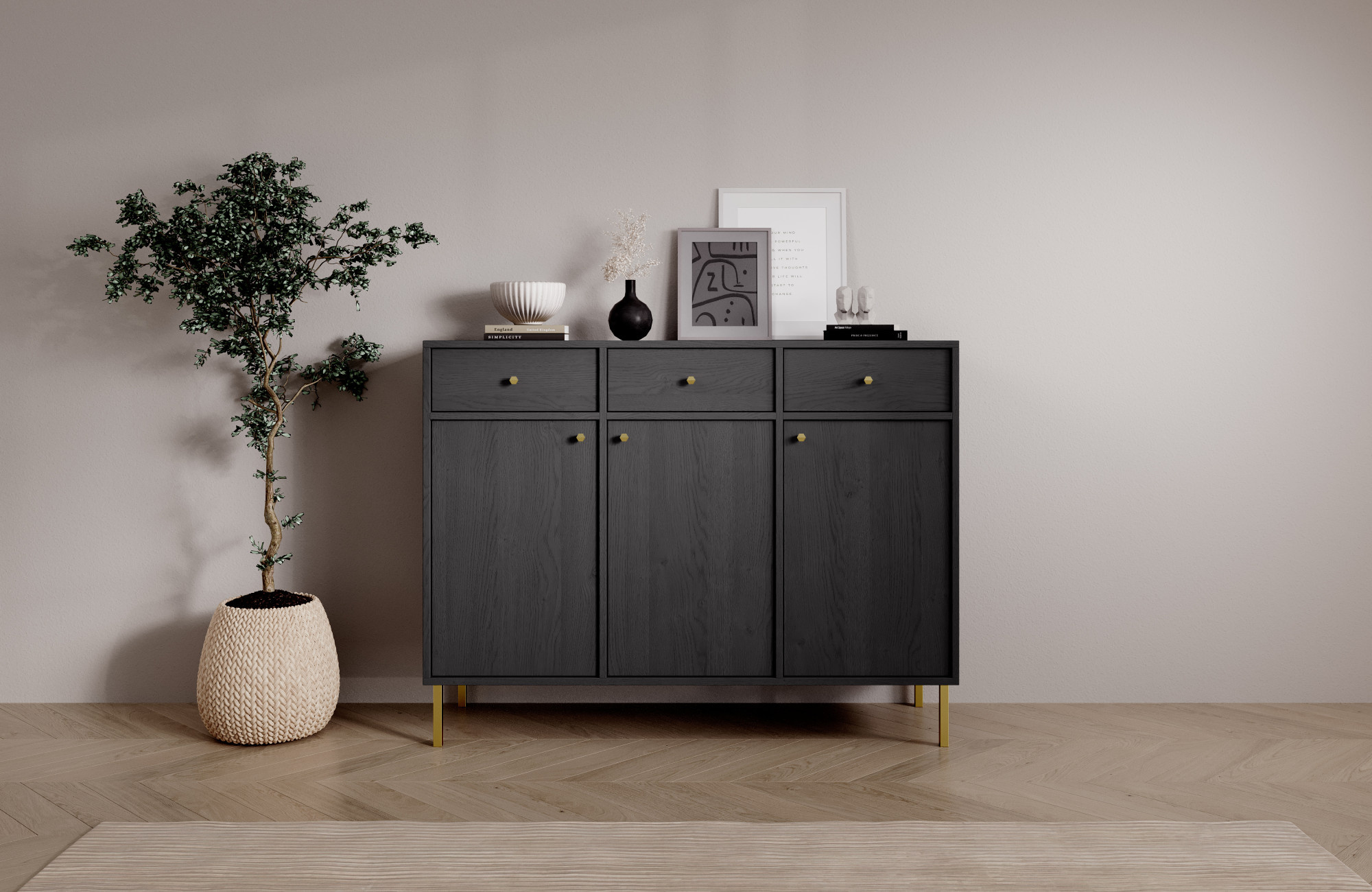 Komoda System Tili je moderní nábytek, který se díky své promyšlené barevnosti a elegantnímu designu dokonale hodí do různorodých interiérů. Dostupná ve třech barevných variantách: **černá**, **písková béžová** a **eukalyptus**, komoda představuje harmonické spojení funkčnosti a estetiky.Každá barevná varianta byla pečlivě navržena, aby zdůraznila jedinečný charakter interiéru. **Černá** dodává komodě sofistikovaný, moderní vzhled, ideální pro minimalistické a elegantní prostory. **Písečná béžová** přináší teplo a jemnost, dokonale se hodí k světlým, přírodním prvkům interiéru. Zatímco **eukalyptus** je odstín inspirovaný přírodou, který přináší do interiéru svěžest a lehkost, ideální pro moderní i více klasické aranžmá.