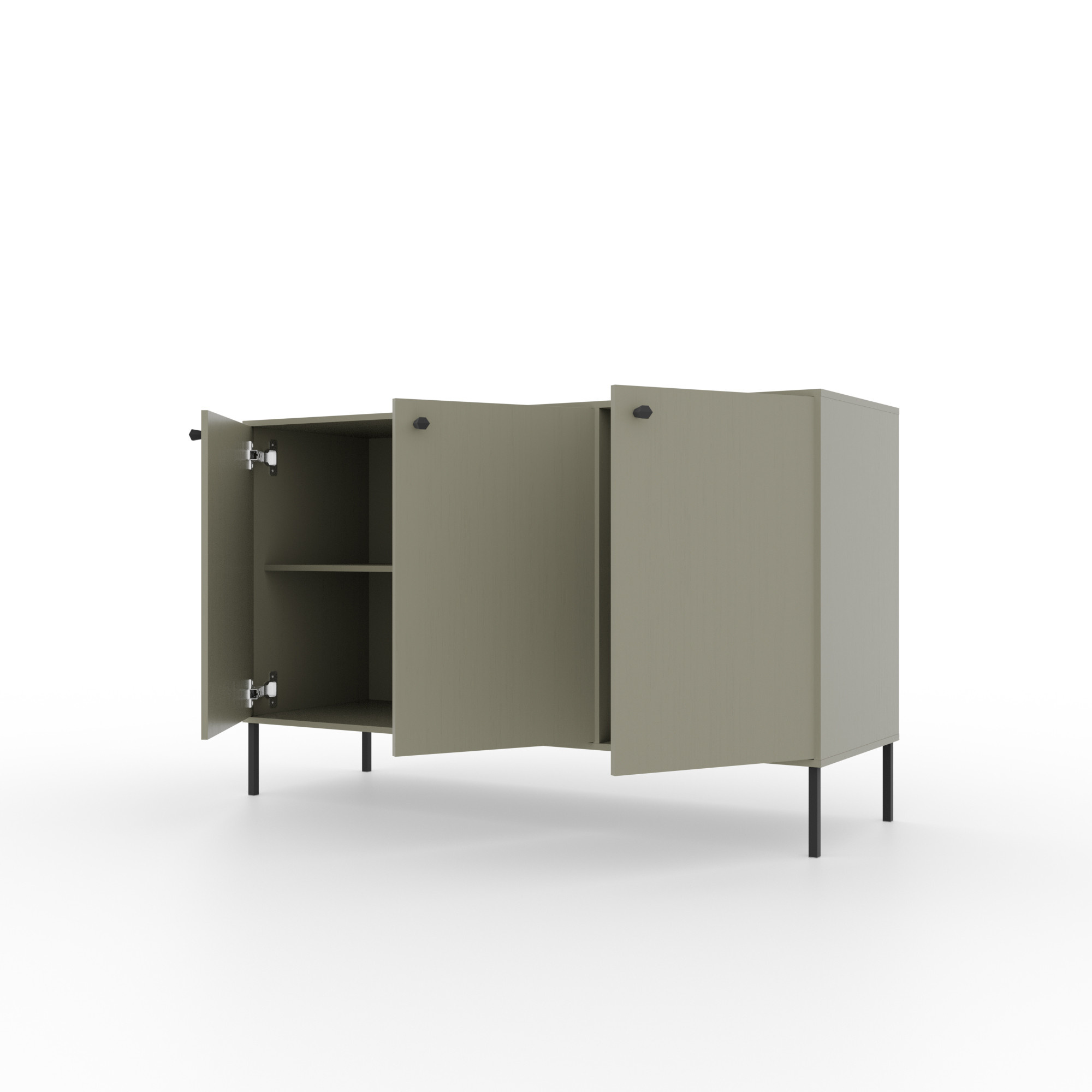 Komoda System Tili je moderní nábytek, který se díky své promyšlené barevnosti a elegantnímu designu dokonale hodí do různorodých interiérů. Dostupná ve třech barevných variantách: **černá**, **písková béžová** a **eukalyptus**, komoda představuje harmonické spojení funkčnosti a estetiky.Každá barevná varianta byla pečlivě navržena, aby zdůraznila jedinečný charakter interiéru. **Černá** dodává komodě sofistikovaný, moderní vzhled, ideální pro minimalistické a elegantní prostory. **Písečná béžová** přináší teplo a jemnost, dokonale se hodí k světlým, přírodním prvkům interiéru. Zatímco **eukalyptus** je odstín inspirovaný přírodou, který přináší do interiéru svěžest a lehkost, ideální pro moderní i více klasické aranžmá.