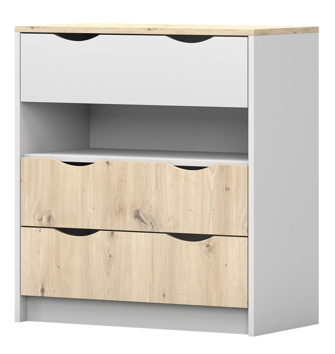 Komoda 3S - JOY I 03, Bílá/Dub Artisan