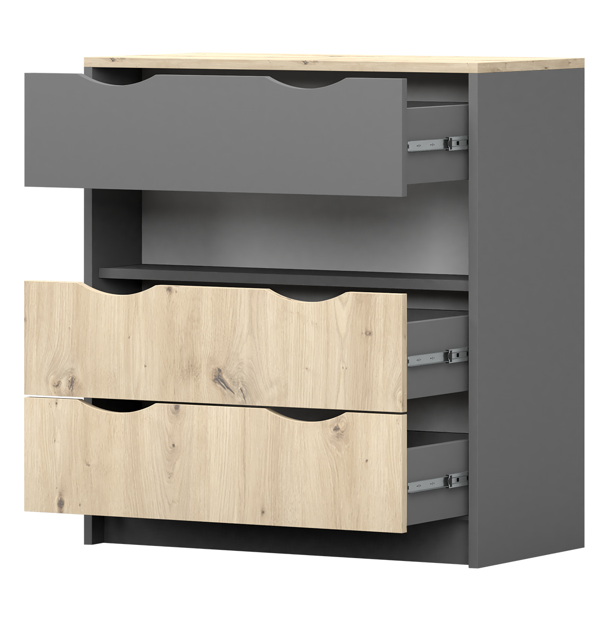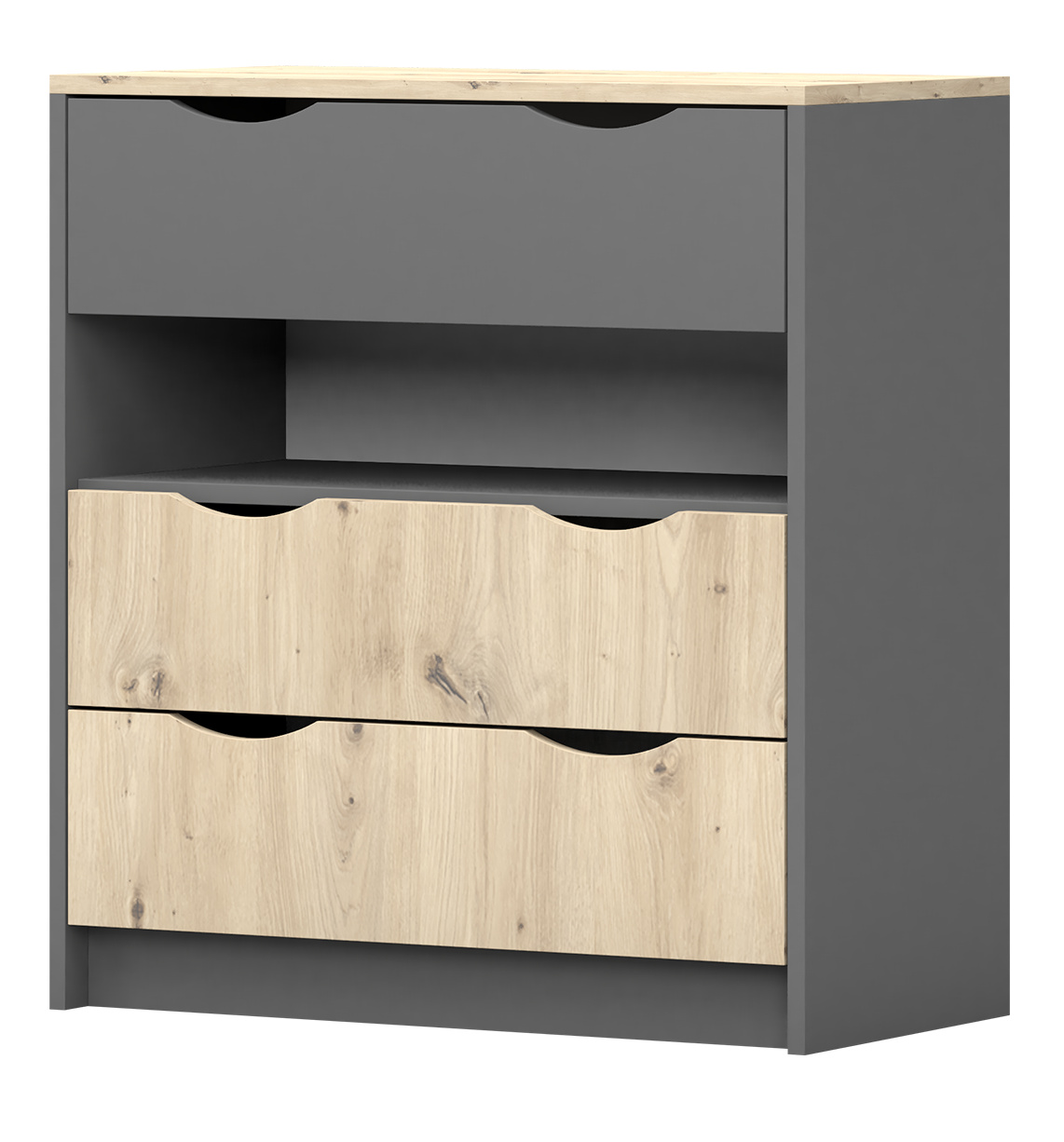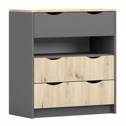 Komoda 3S - JOY II 03, Šedá/Dub Artisan