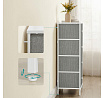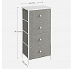 Komoda o rozměrech 45x30x92 cm kombinuje pevnou MDF desku s matnou povrchovou úpravou v bílé barvě a stabilní kovovou konstrukci nohou. Čtyři prostorné zásuvky z netkané textilie v šedém odstínu poskytují praktický úložný prostor pro různé drobnosti a zároveň usnadňují organizaci. Jednoduchý design s decentními bílými úchytkami ladí s moderním i skandinávským stylem interiéru. Komoda je navržena tak, aby byla lehká a zároveň dostatečně pevná pro každodenní použití. Díky kompaktním rozměrům se hodí do menších prostor, kde je potřeba efektivně využít místo.