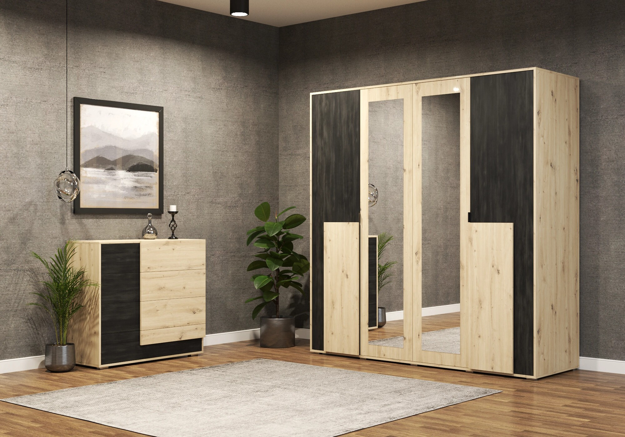 Komoda 4S BAFRA - 46, Dub Artisan/Černá Norská