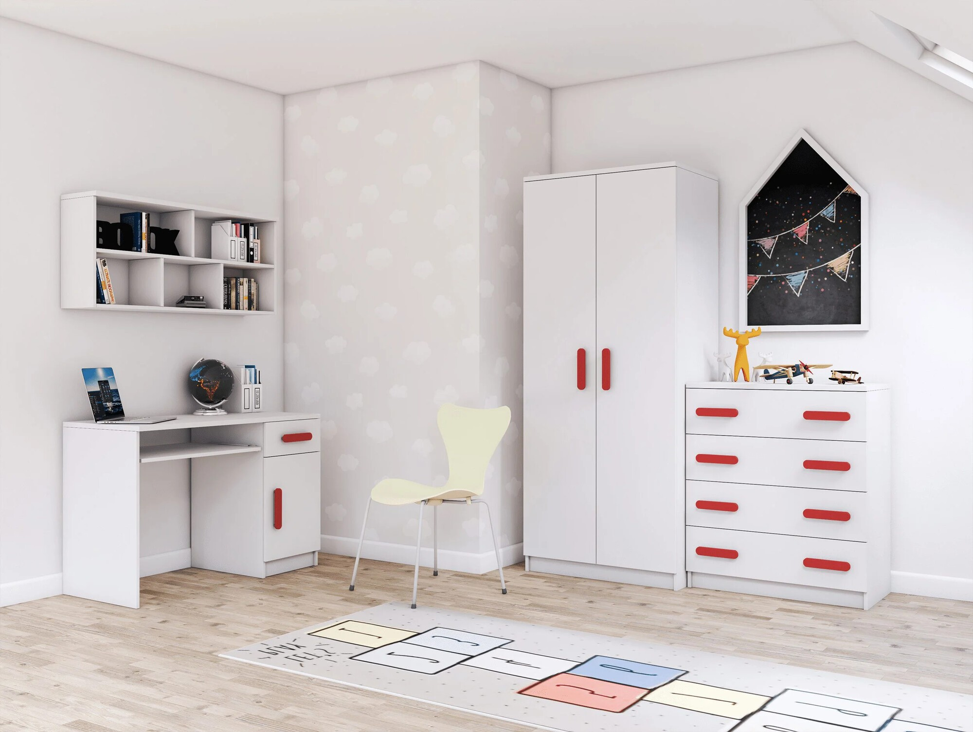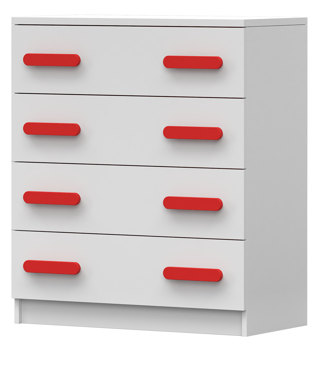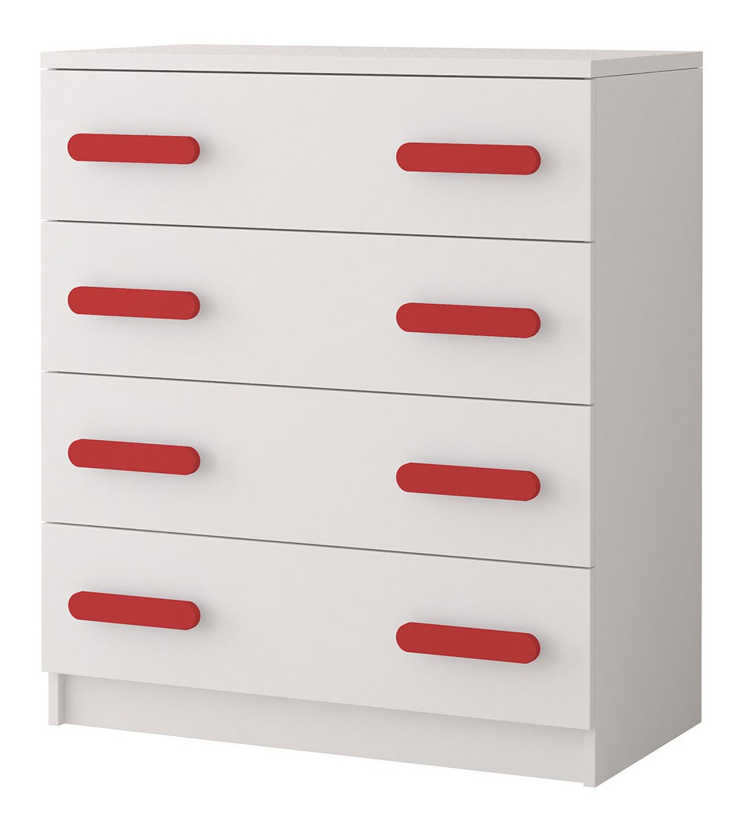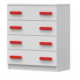 Komoda 4S SMYK I - 02, Bílá Mat/Červená
