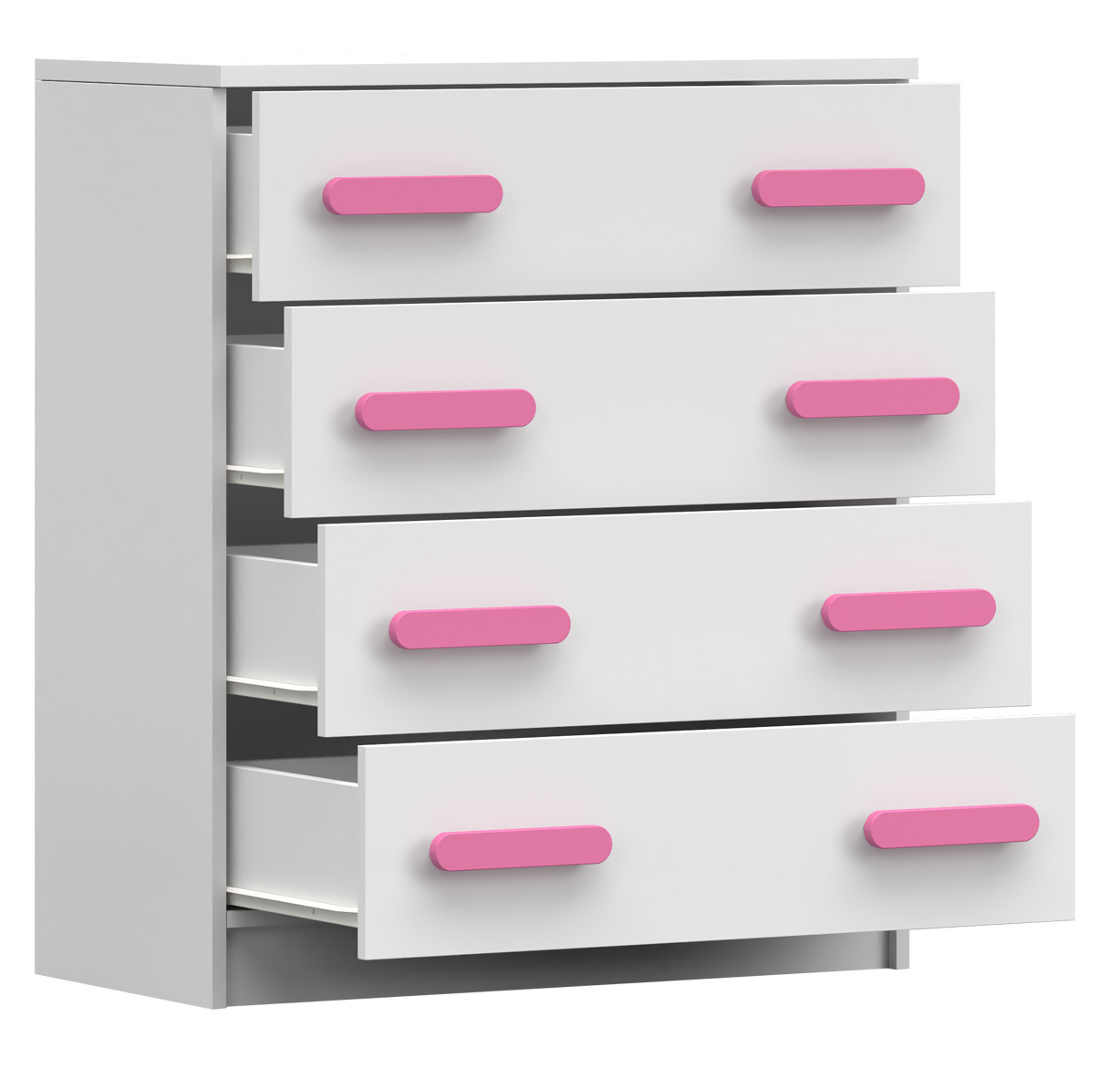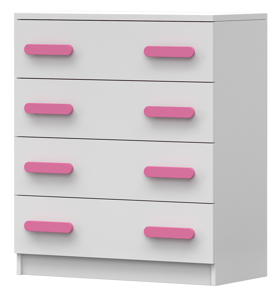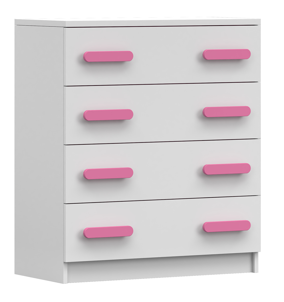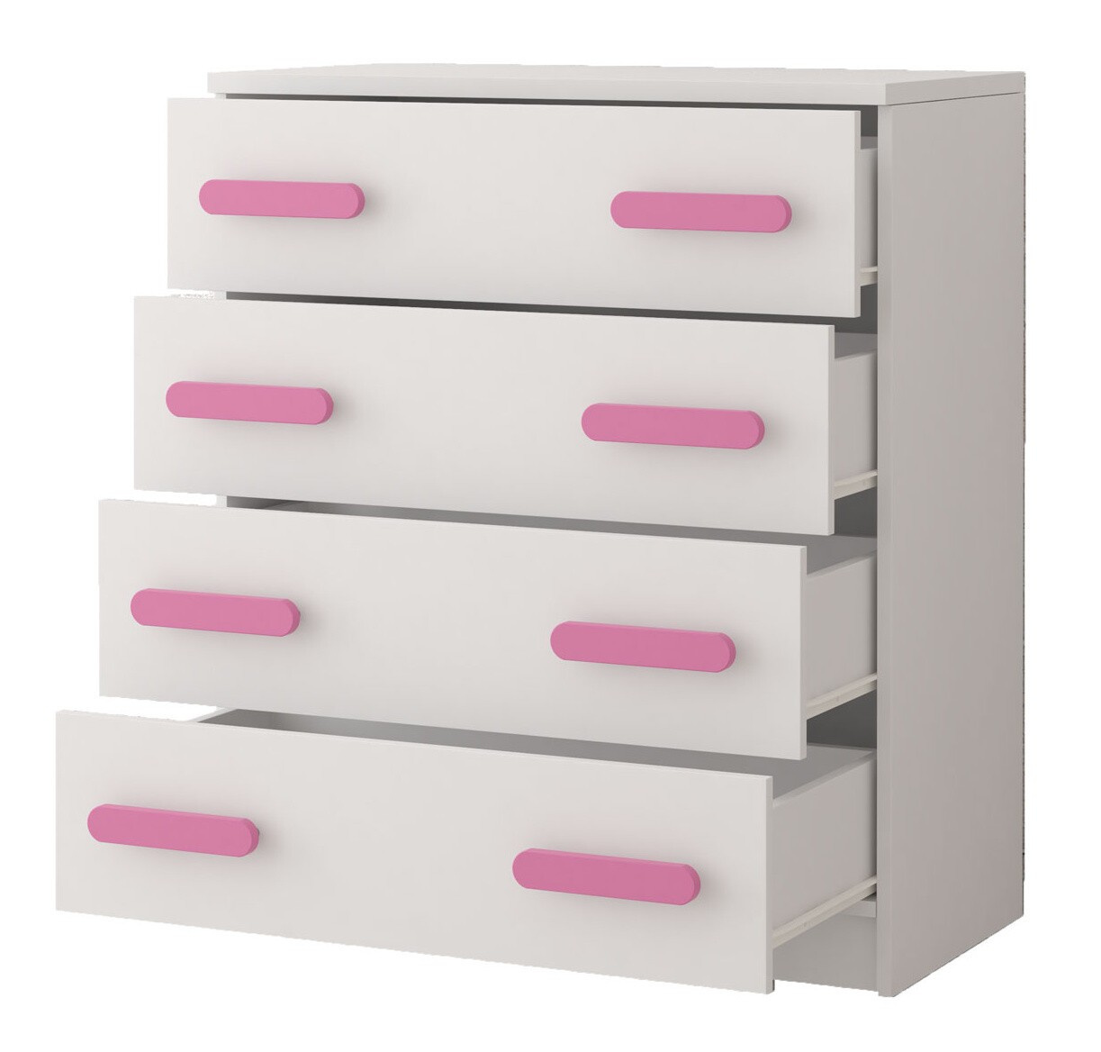 Komoda 4S SMYK I - 02, Bílá Mat/Růžová