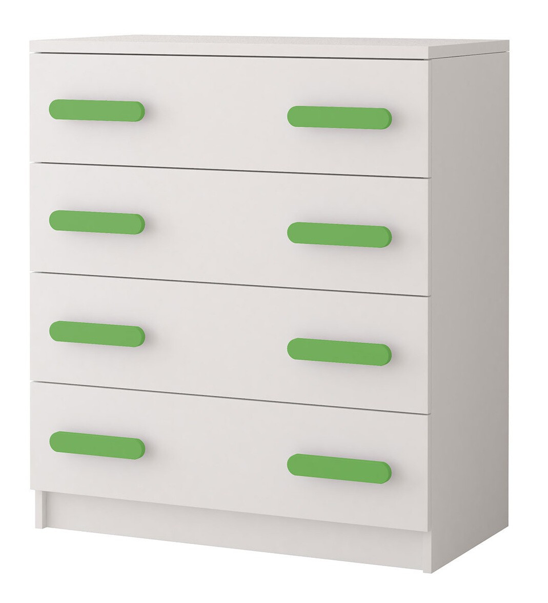 Komoda 4S SMYK I - 02, Bílá Mat/Zelená
