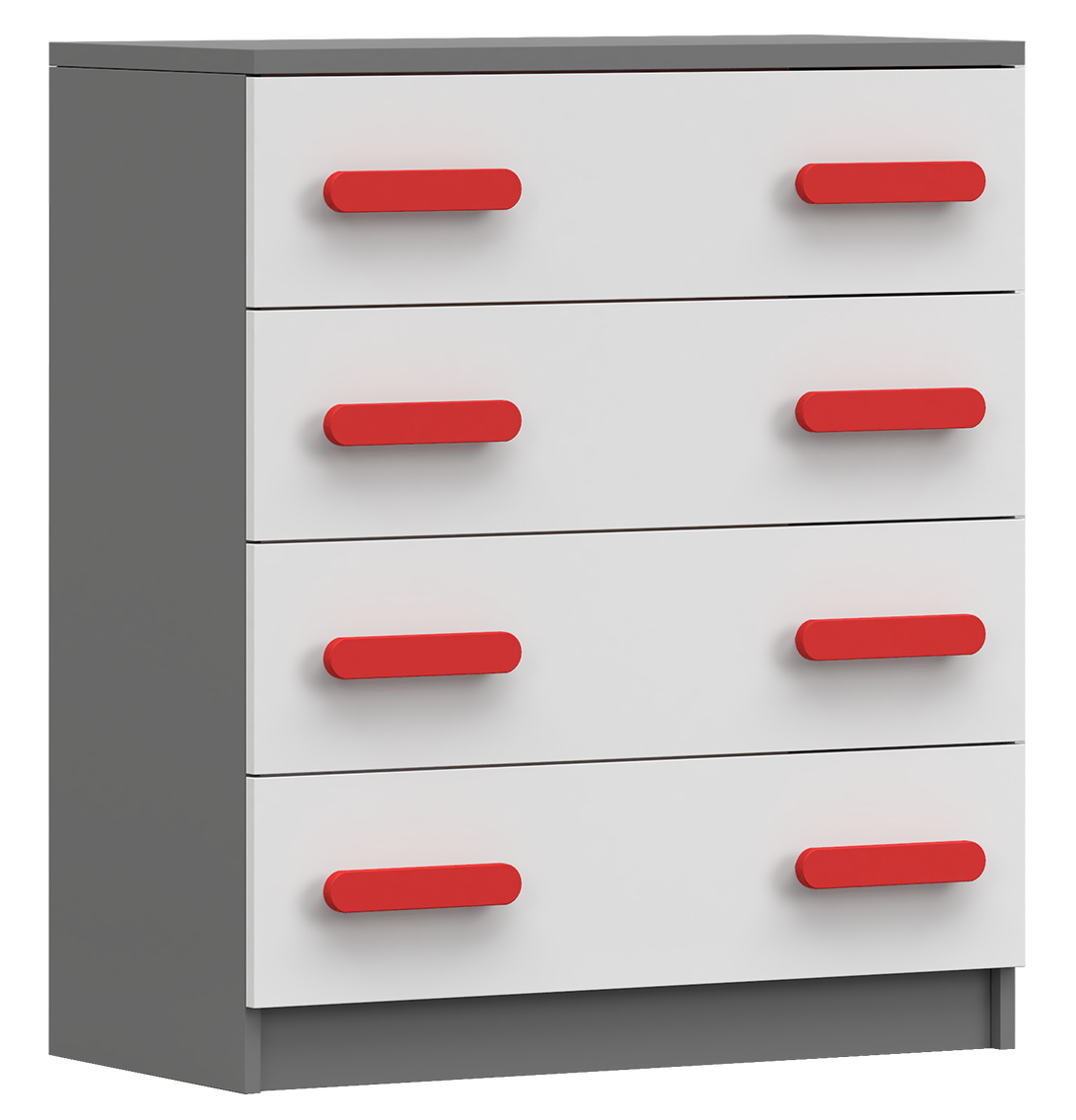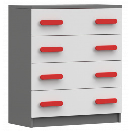 Komoda 4S SMYK II - 02, Šedá/Bílá/Červená
