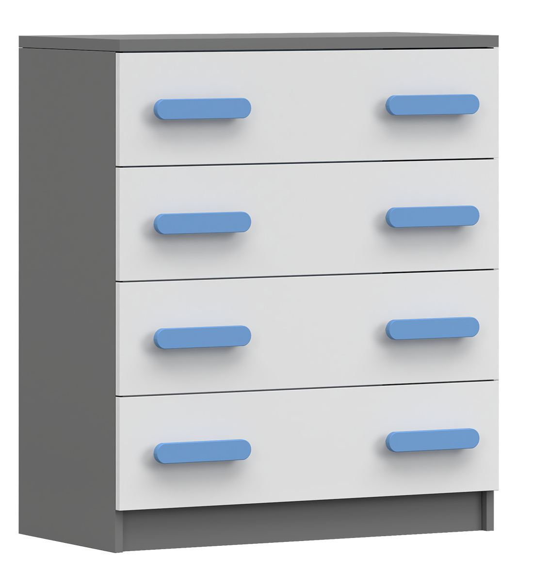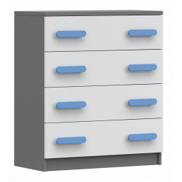 Komoda 4S SMYK II - 02, Šedá/Bílá/Modrá