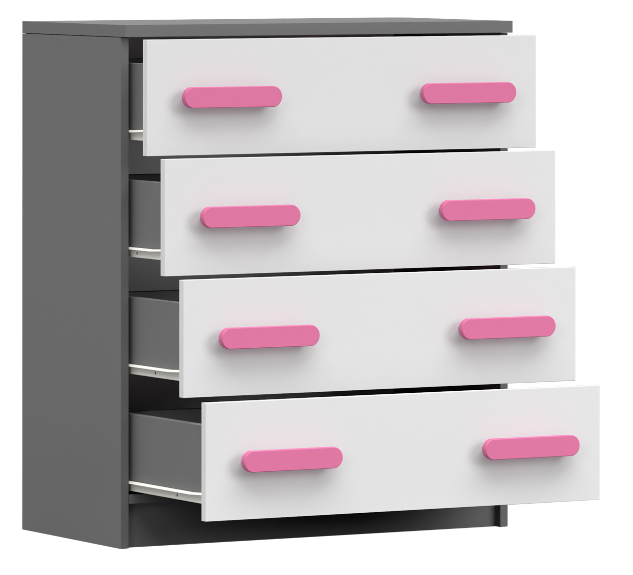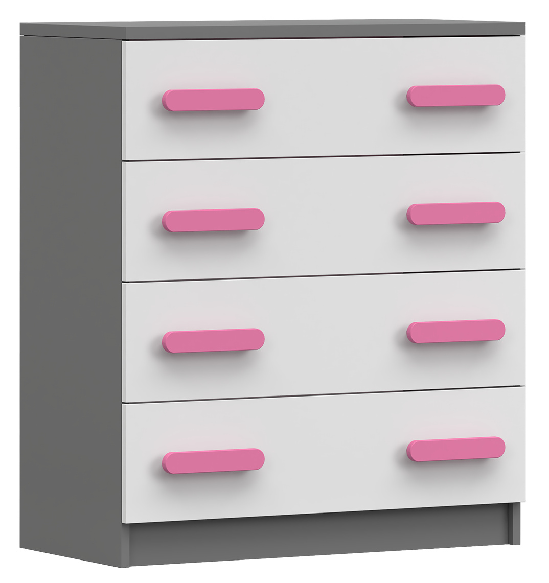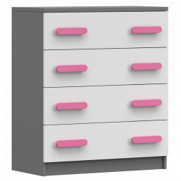 Komoda 4S SMYK II - 02, Šedá/Bílá/Růžová