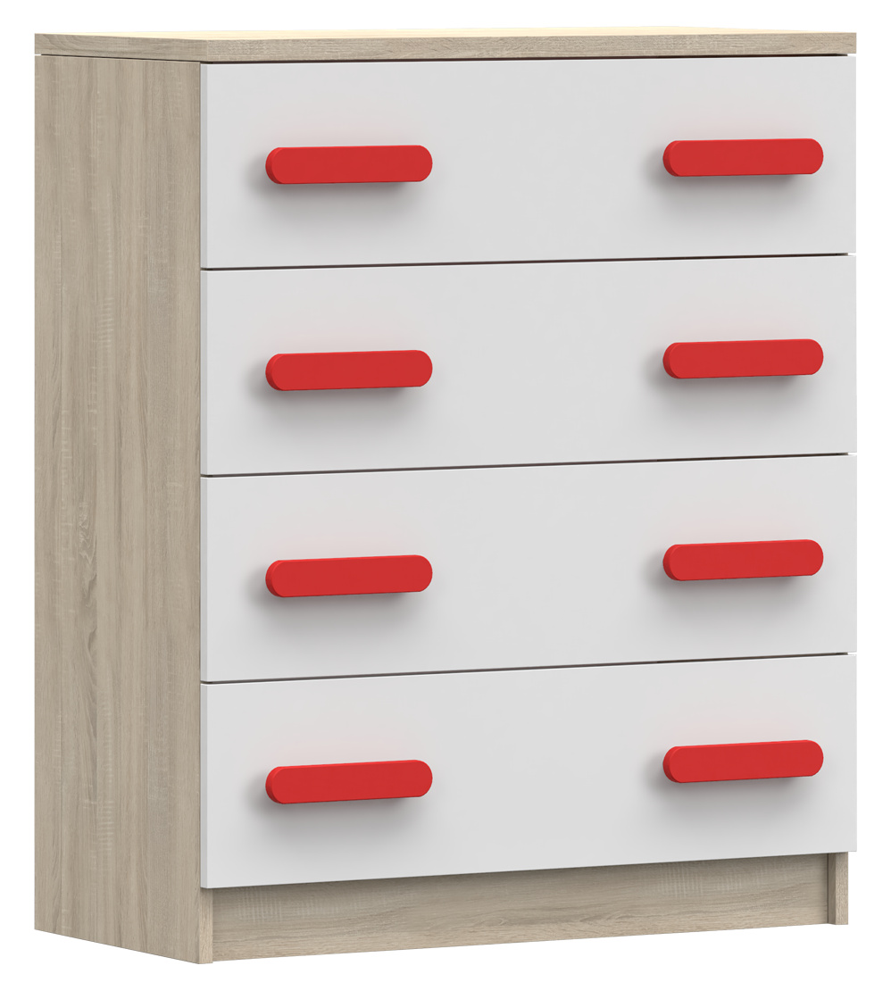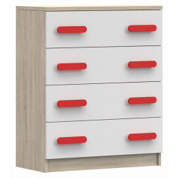 Komoda 4S SMYK III - 02, Dub Sonoma/Bílá/Červená