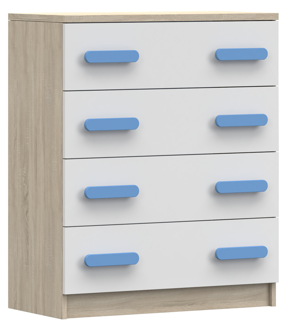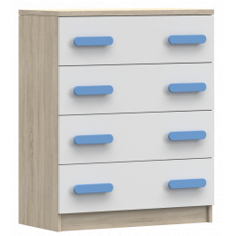 Komoda 4S SMYK III - 02, Dub Sonoma/Bílá/Modrá