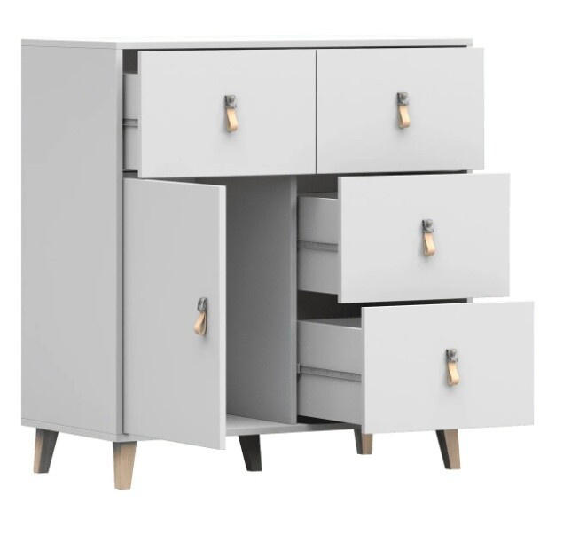 Komoda 4S1D - FIGO 03, Bílá/Přírodní