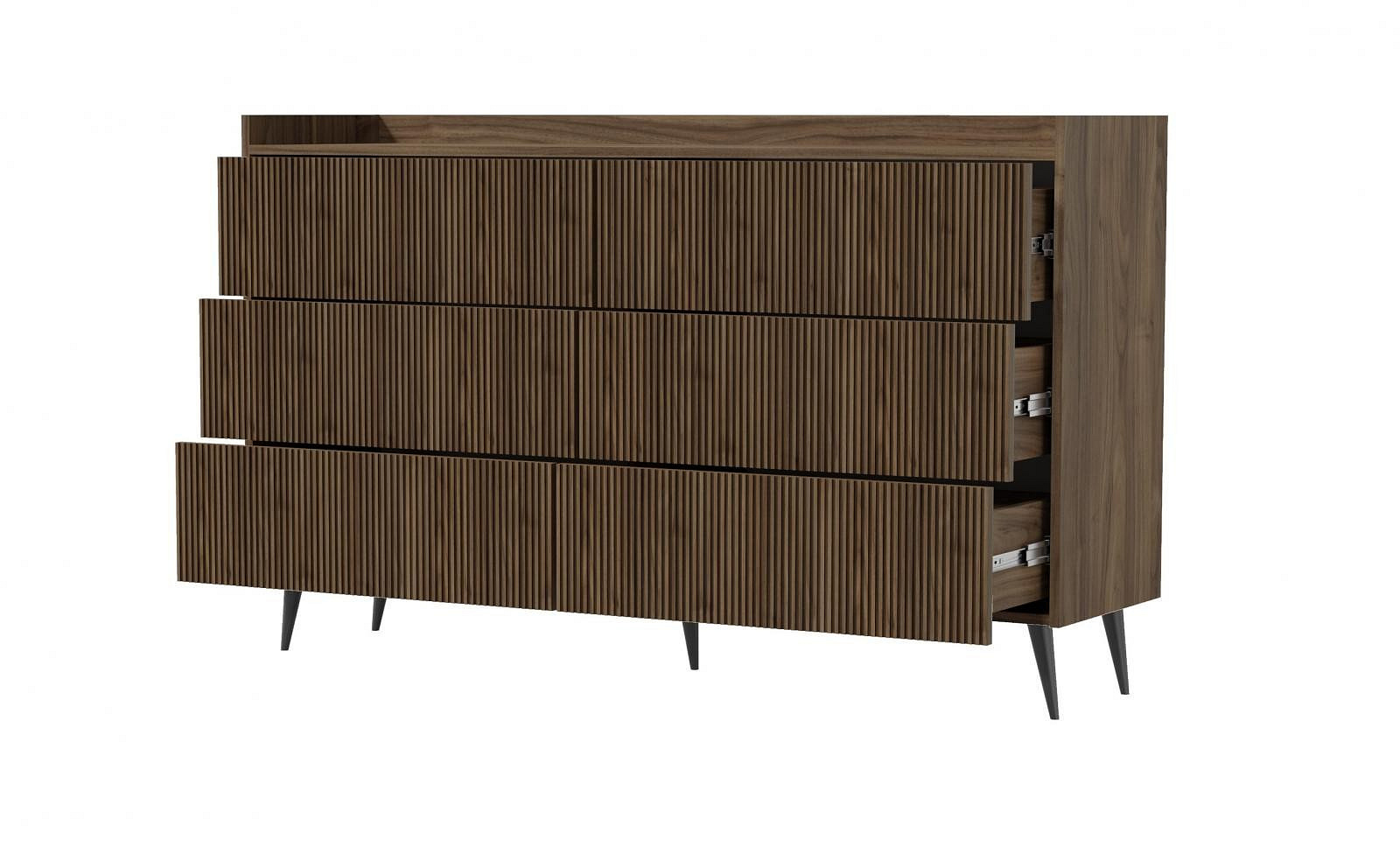 Série nábytku Adleta vyniká elegantním stylem, originalitou a funkčností. Drážkovaná dvířka v kombinaci s krásnou barvou ořechového dřeva se skvěle hodí do různých interiérových konceptů – od moderních až po klasické. Tato sestava zahrnuje knihovnu, noční i konferenční stolek, komody a TV stolky v různých provedeních. Splňuje všechna očekávání náročných uživatelů v oblasti kvality a zpracování.