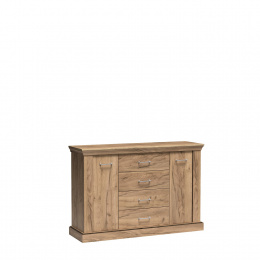 Elegantní, poutavá komoda z kolekce Antica. Díky čtyřem objemným zásuvkám, které pomáhají při každodenní organizaci, a dvěma skříňkám s policí se stává velmi funkční. Pojme mnoho oblečení, dokumentů a doplňků, takže její používání je velmi příjemné. Dokončená kovovými úchytkami a tichým zavíráním skříněk se stává velmi elegantní. K dispozici ve dvou barvách.