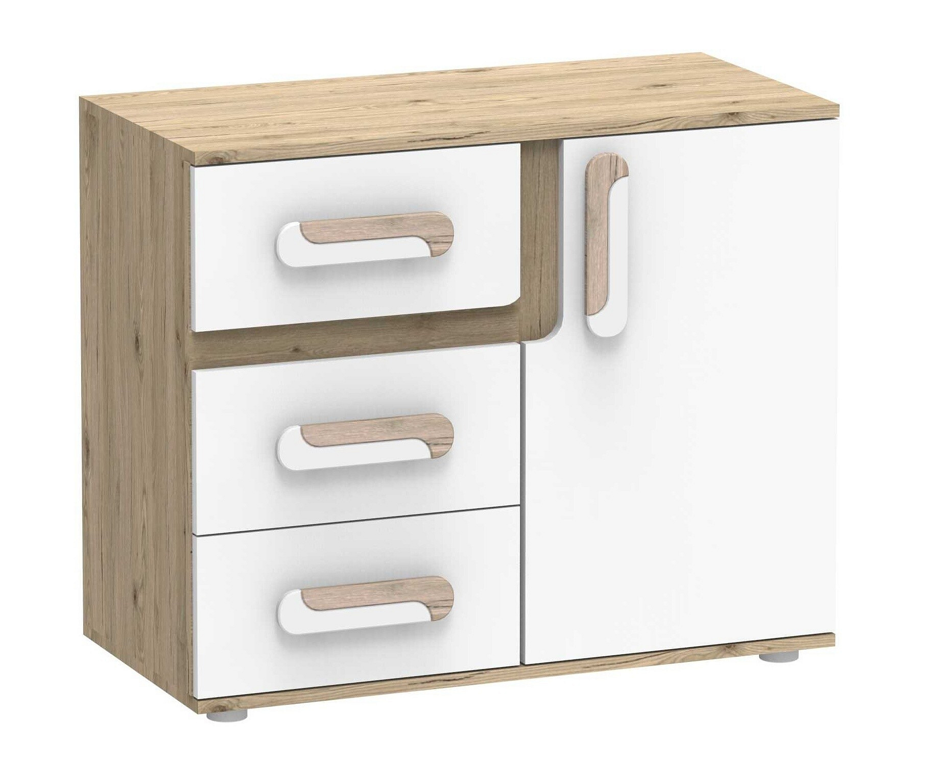 - Úchytky: Nábytek je vybavena úchytkami ze syntetického materiálu, které jsou nejen odolné, ale také příjemné na dotek. Jejich moderní design přispívá k celkovému estetickému dojmu.