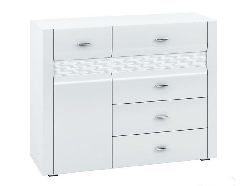 : Dvířka: Bílá vysoký lesk + dekorativní drážkování