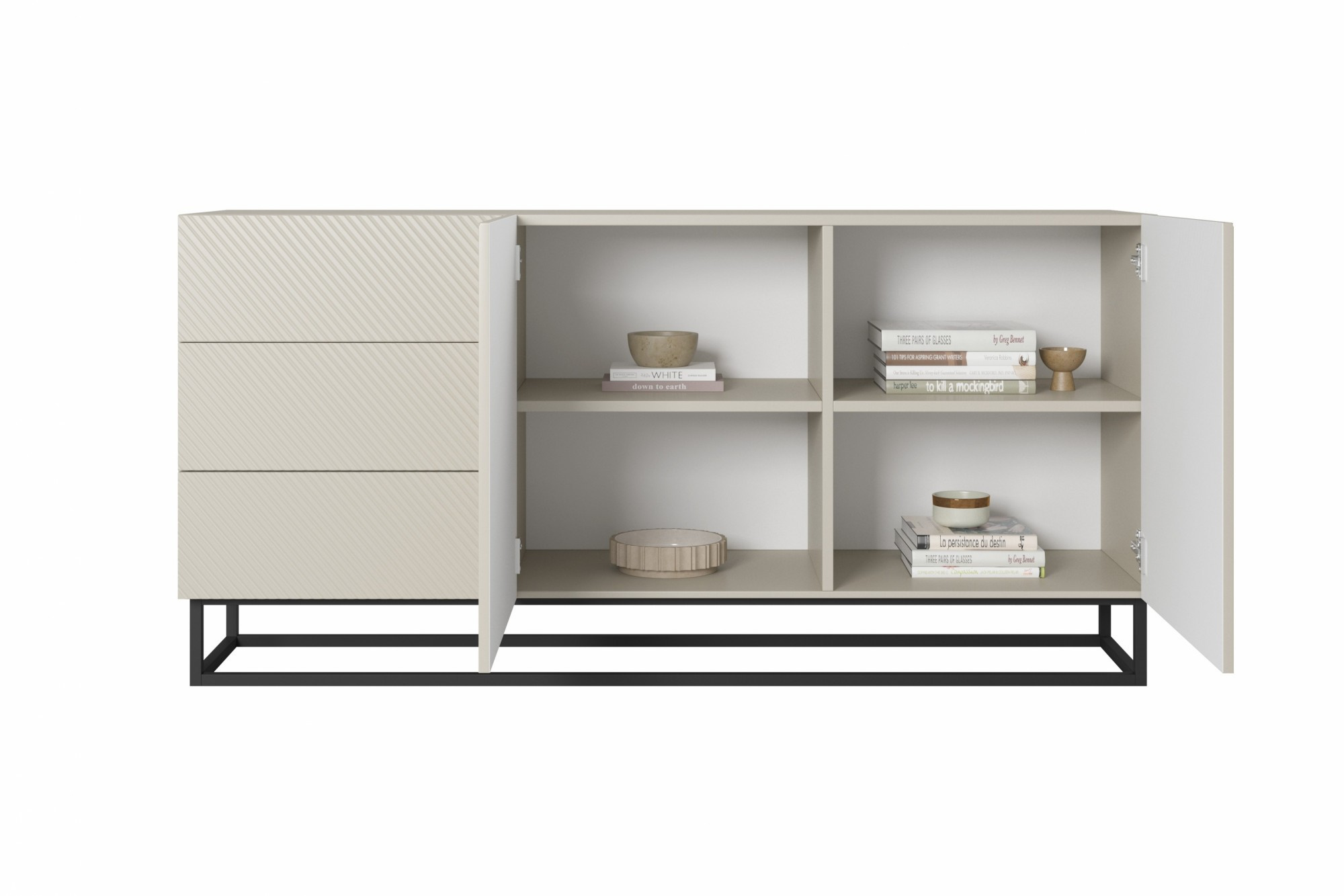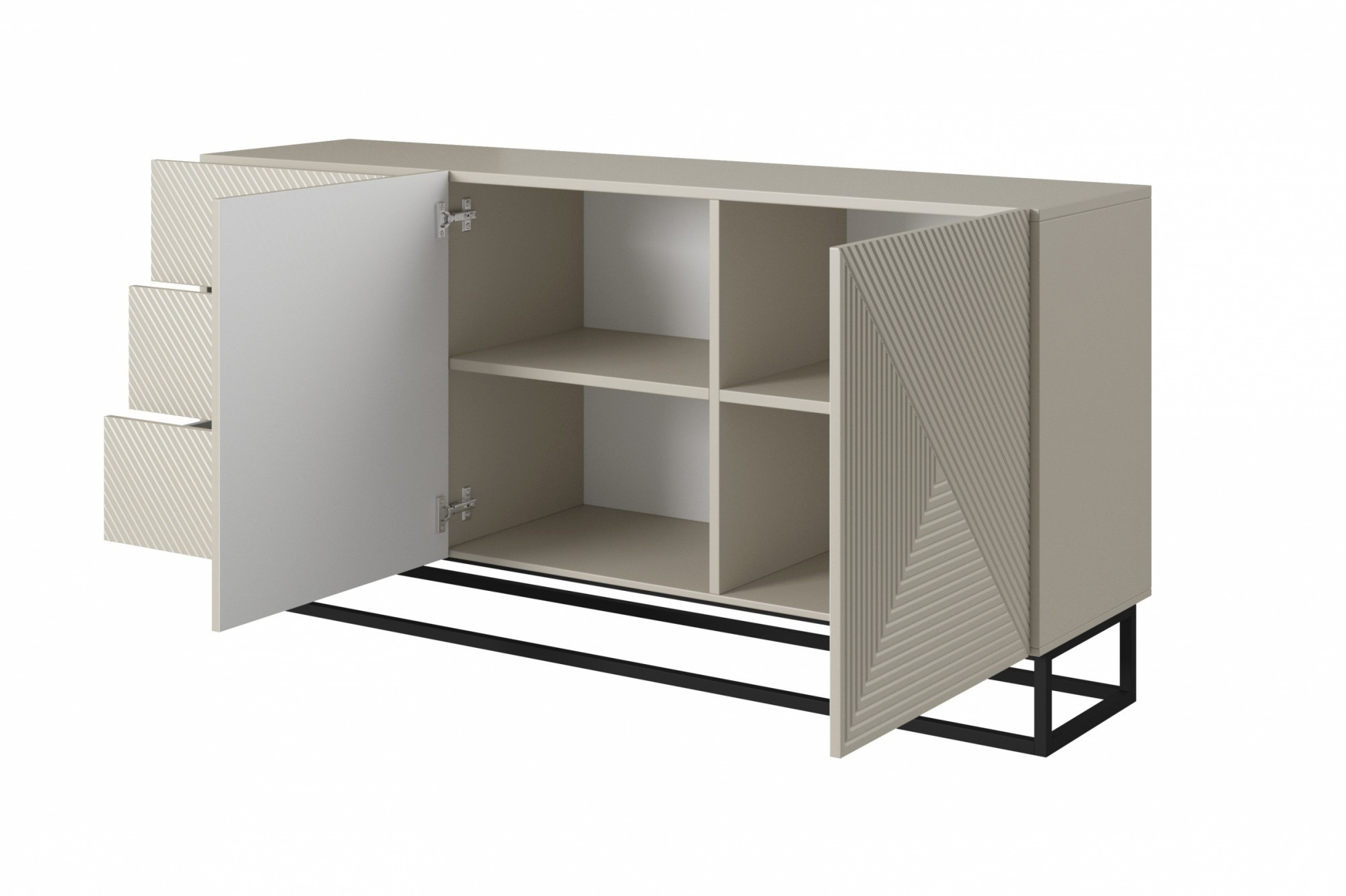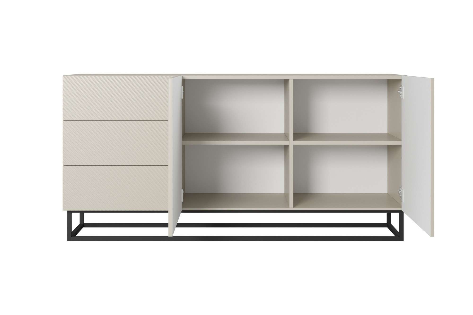 Komoda Asha se zásuvkami a kovovými, černými nohami 167 cm - kašmír, Šířka: 167, Výška: 81, Hloubka: 43, Výška nožek: 16, Hloubka desky: , Montáž:
