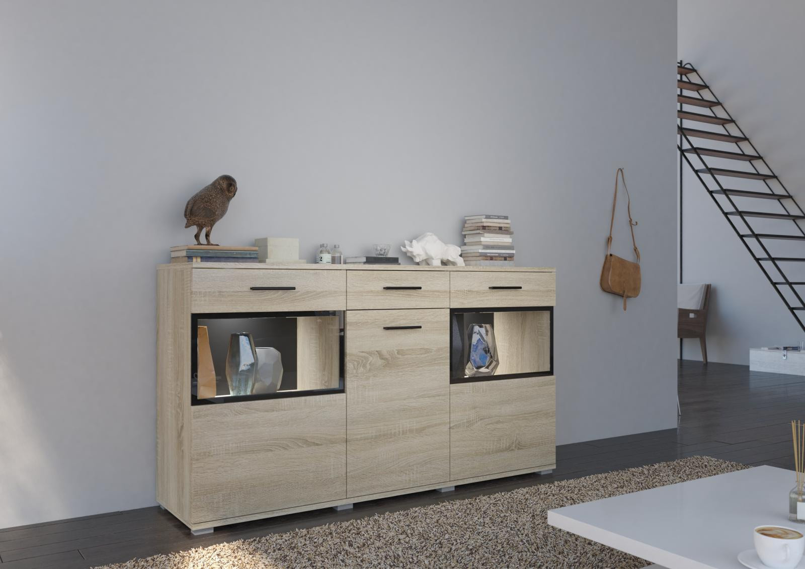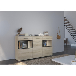 Komoda Bart je nejen skvělým doplňkem k bytové stěně Bart. Stejně výborně poslouží jako samostatný kus nábytku. Komoda má univerzální využití a nabízí dostatek úložného prostoru. Komoda je vyrobena z odolného lamina tloušťky 15mm. Komoda je dodávaná v demontu. Součástí balení je schematický montážní návod, včetně všech potřebných spojovacích prvků. Vyobrazené doplňky a dekorace nejsou v ceně. Ke komodě je možno zakoupit LED osvětlení.