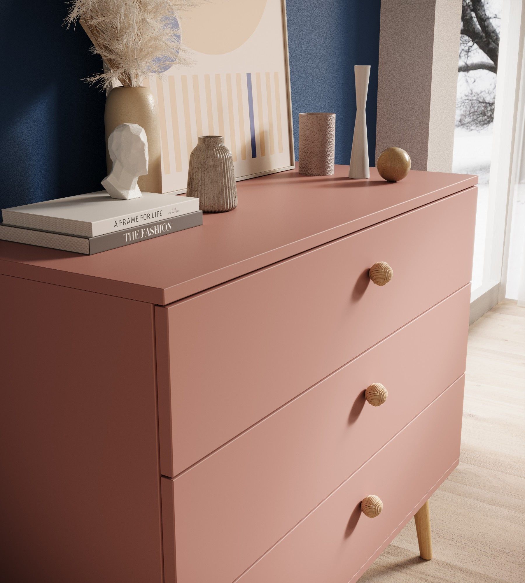Objev komodu Beni, která spojuje funkčnost s výjimečným stylem! Skandinávský minimalismus v kombinaci s boho detaily, jako jsou dřevěné nožky a provázkové úchyty, činí nábytek vhodným pro každý interiér – od obývacího pokoje po ložnici. Prostorné zásuvky s tichým zavíráním a odolná konstrukce z vysoce kvalitních materiálů zajišťují komfort a dlouhou životnost. Vytvořte teplý, stylový prostor díky této jedinečné komodě a objevte zbytek kolekce!