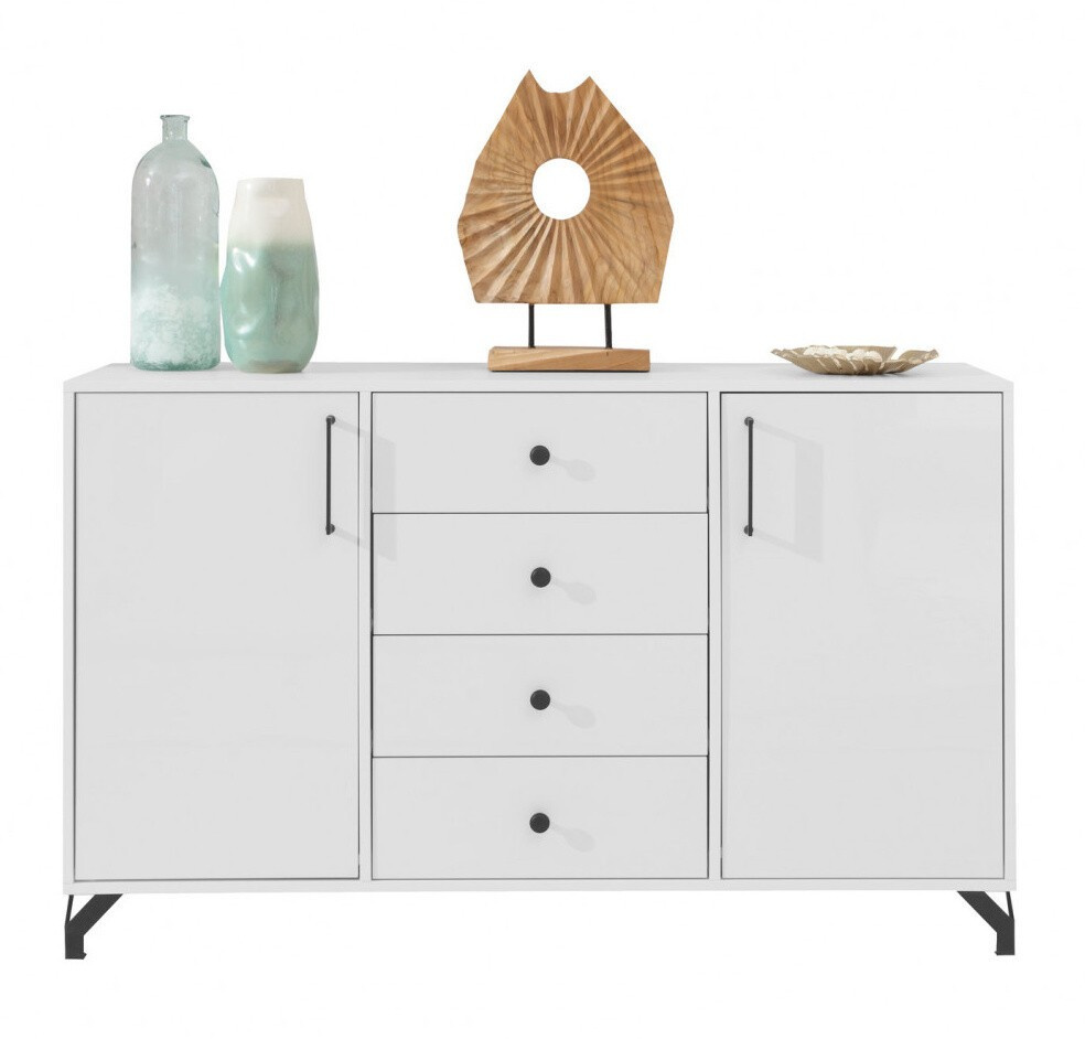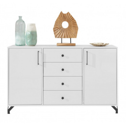 Komoda BERGEN - BE6, Bílý Lux + Bílá vysoký lesk