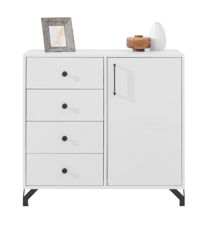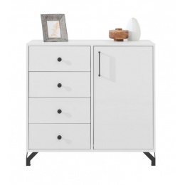 Komoda BERGEN - BE7, Bílý Lux + Bílá vysoký lesk